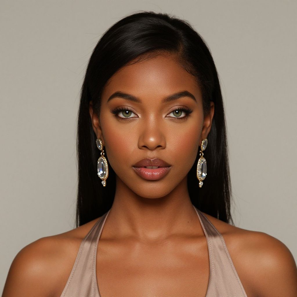 Realistic Dark-Skinned Girl in Gold Outfit