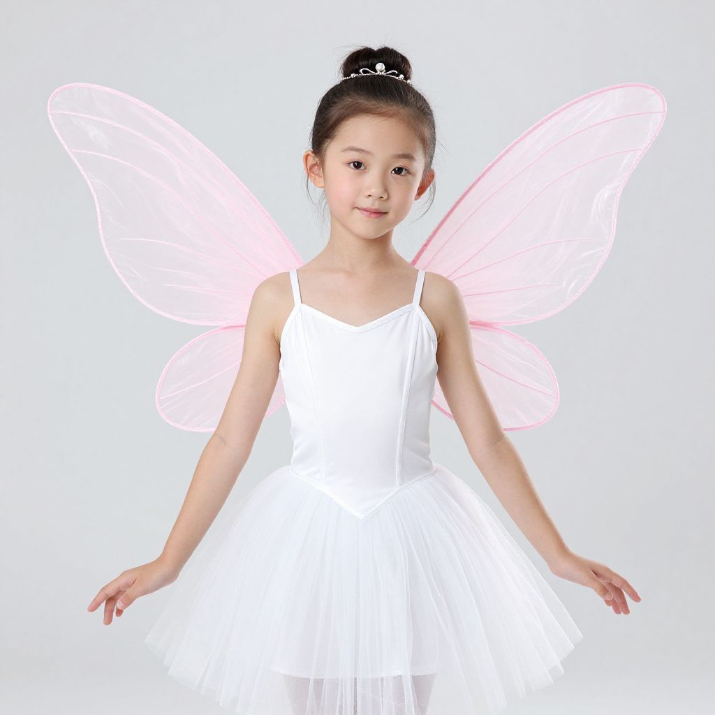 Sugar Plum Fairy Costume, girl in a white dress and pink fairy wings