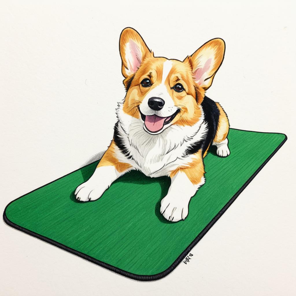 A cartoon-style depiction of an energetic parrot stretching in a downward dog yoga pose on a brown mat. Rendered in vibrant colors, thick outlines, with a clean white background and a cheerful, low-detail aesthetic.