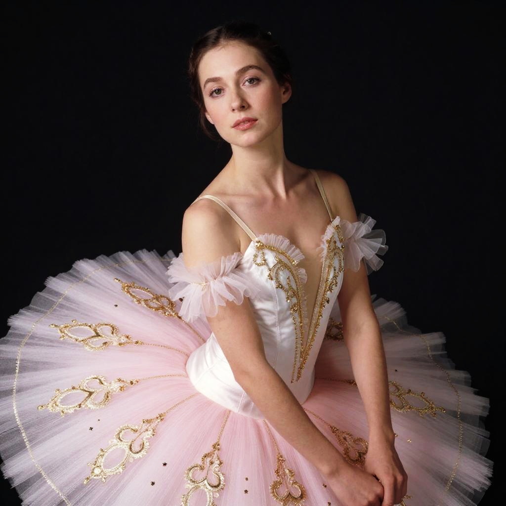 Realistic photo.Color Harmony une femme à l'élégance intemporelle, habillée en tenue de ballet rose et blanc, photo essay, perfect faces, shot by Tim Walker and Richard Avedon, intricate texture, perfect details, film grain, analog photograph, shot on Phase One camera realistic photo