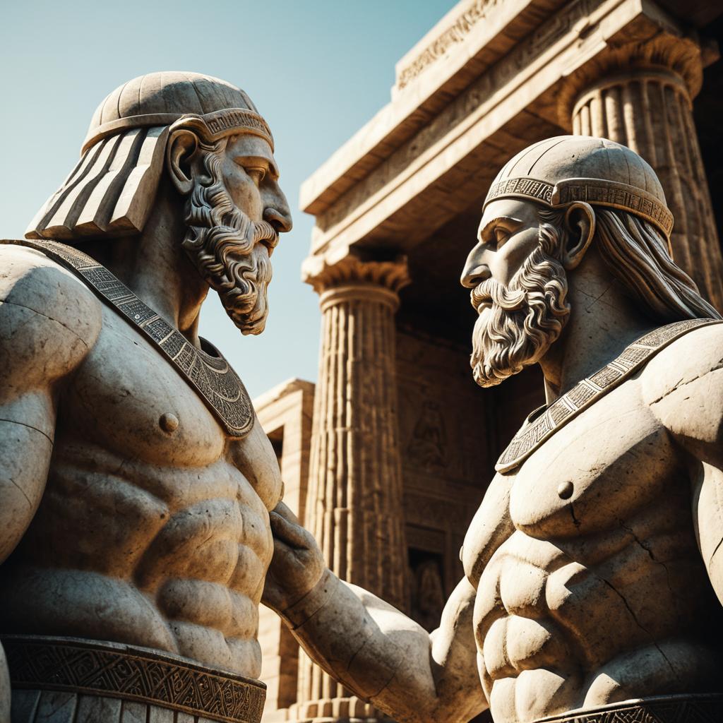 Michelangelo a wide shot of an ancient Greek philosopher teaching his disciples in an agora, earthy bronze and white, inspirational, ultra-realistic, highly detailed.