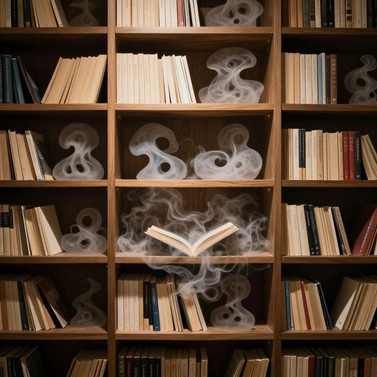 A librarian made of smoke shelves books whose pages vanish when read, leaving behind abstract sculptures of emotion in their place.