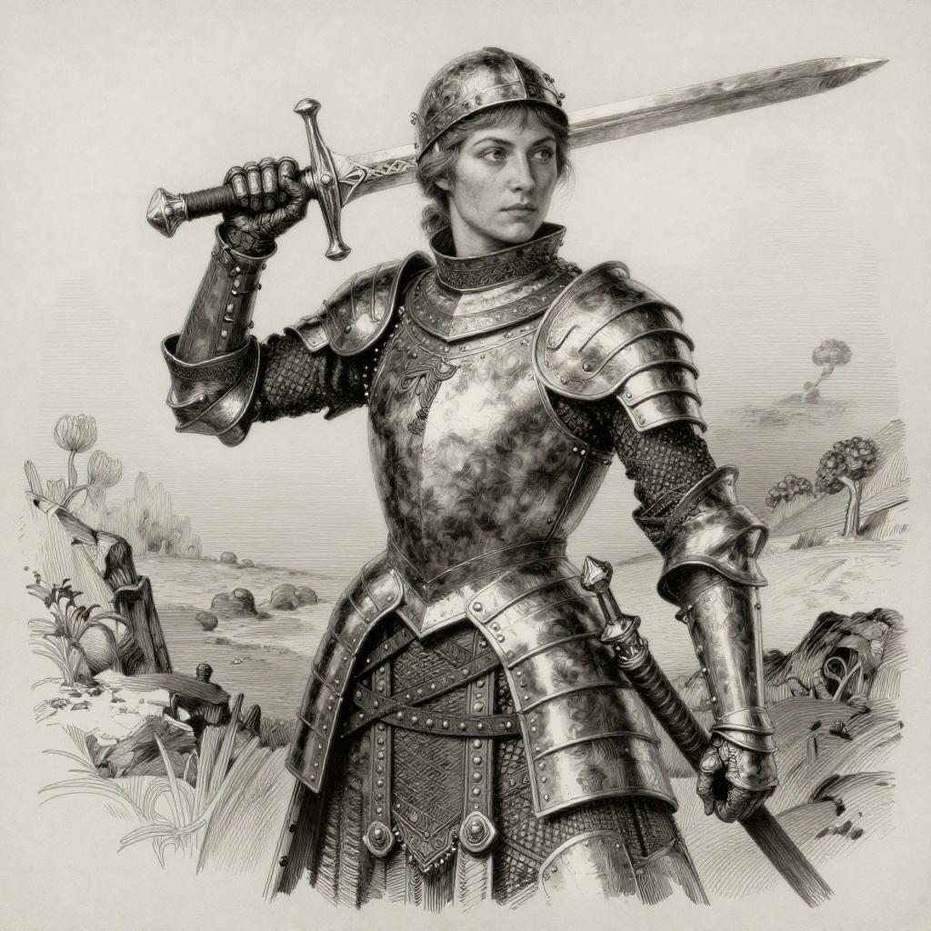 Portrait of a Young Woman in Medieval Armor