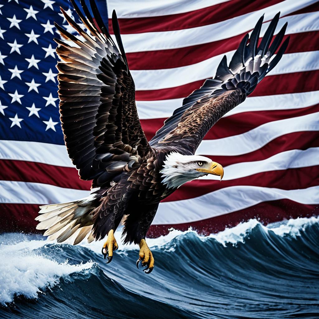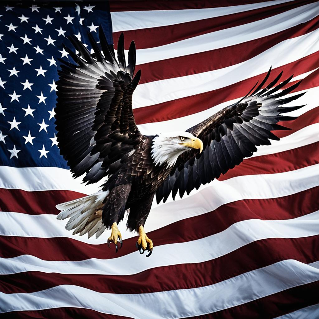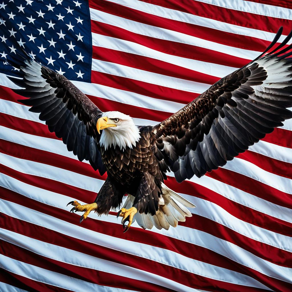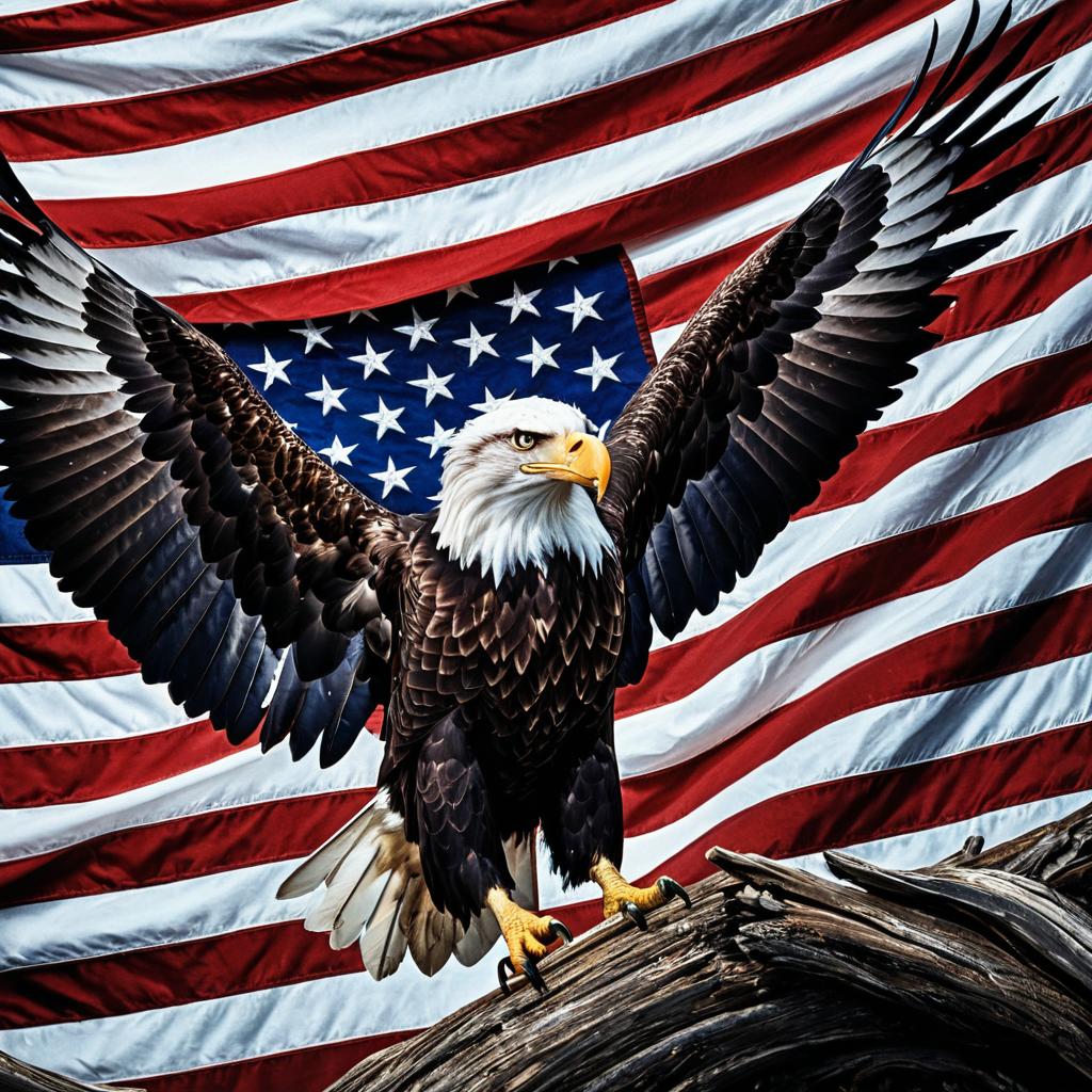 Majestic Bald Eagle and American Flag