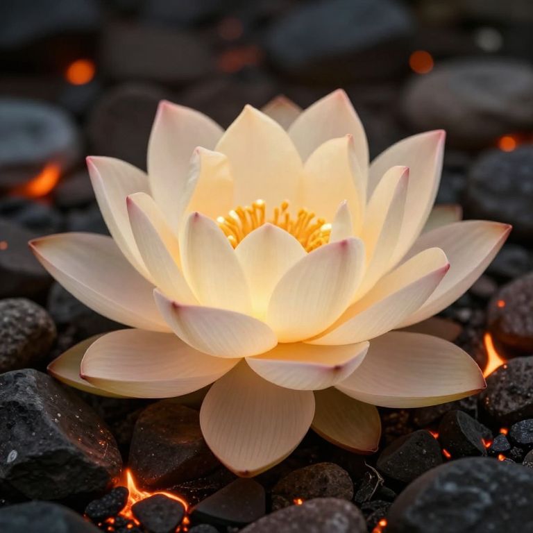 Luminous Lotus Bloom Amid Fiery Stones