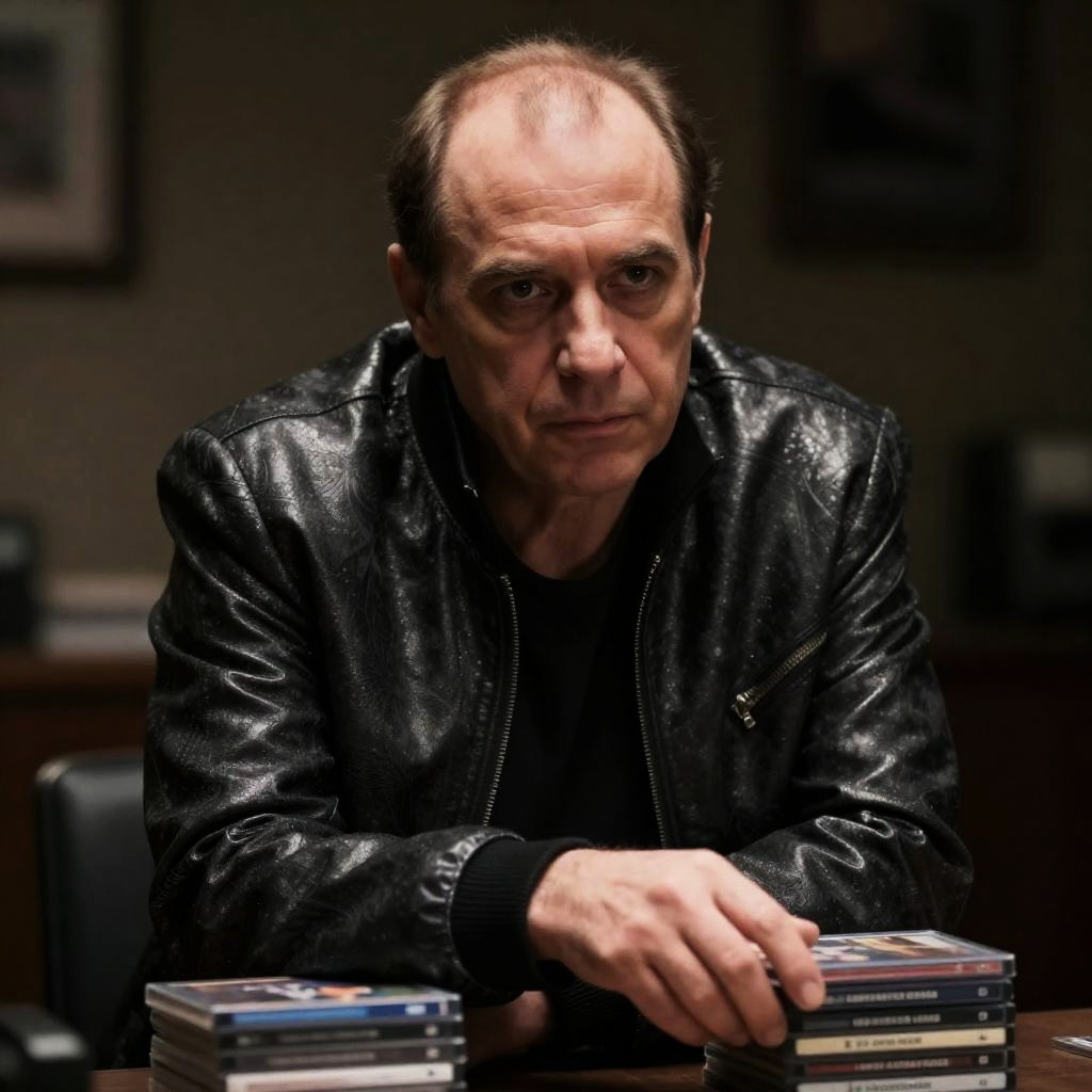 An artistic representation of a man styled similarly to a character from The Sopranos, captured in an outdoor setting with a soft focus background.
