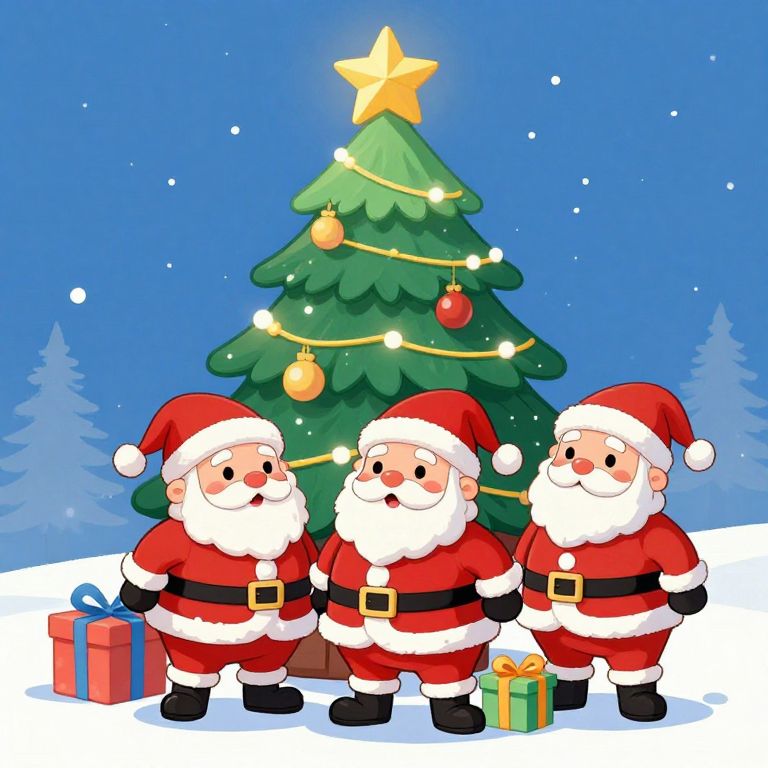 Cartoon Christmas Characters Xmas Tree With Santa Claus Gifts