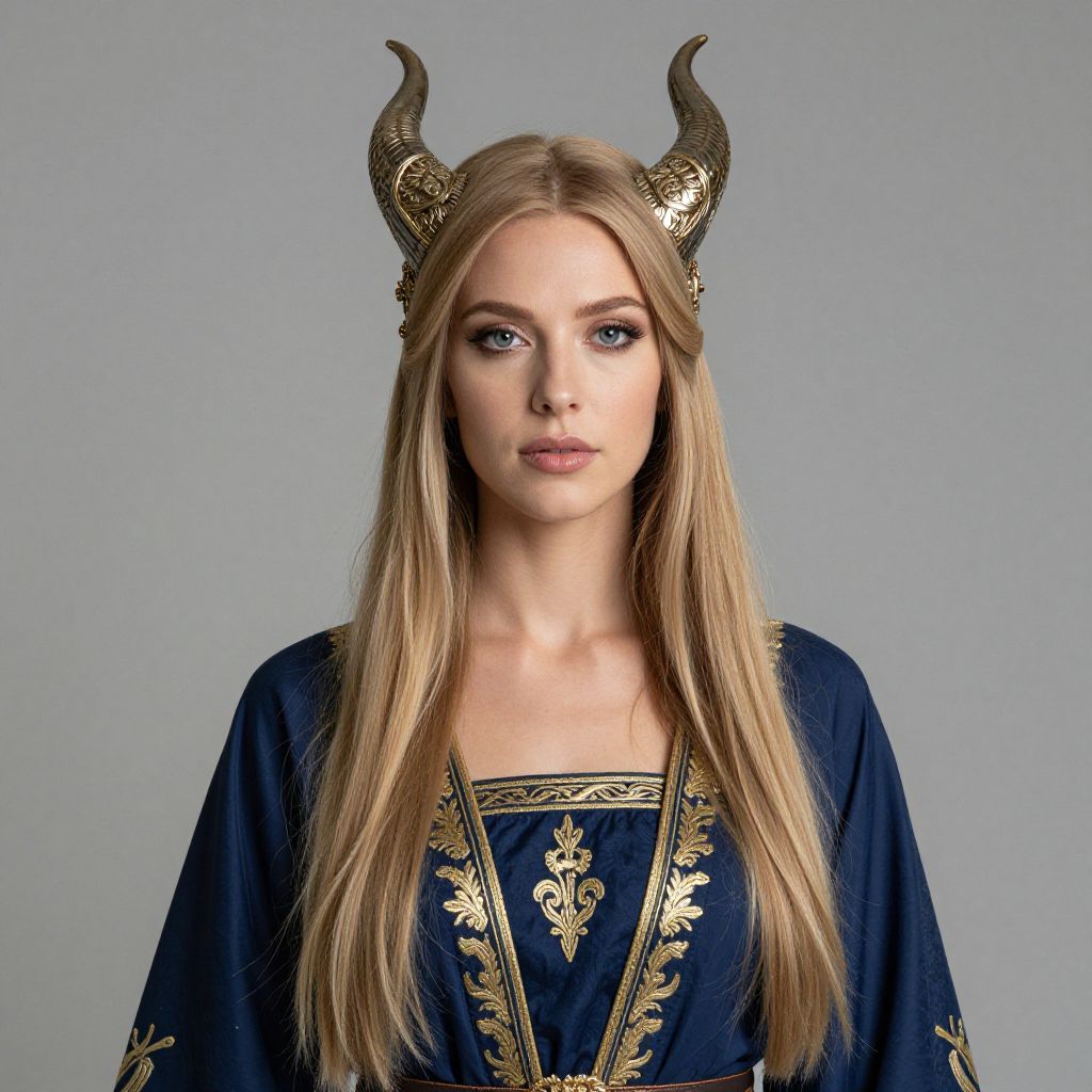 Blonde Woman with Horned Headpiece