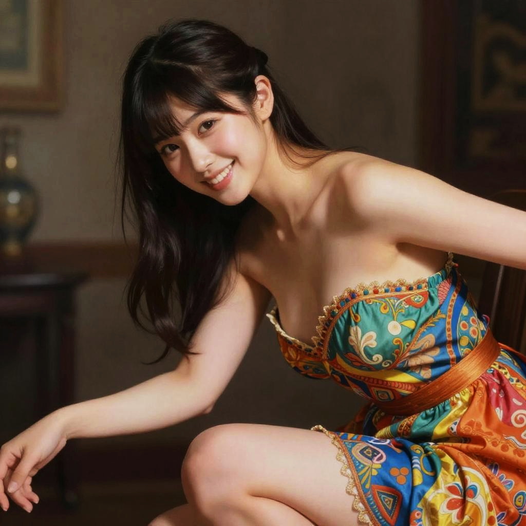 <(photorealistic:1.4), (extremely intricate:1.2)>, <(exquisitely detailed skin), cinematic light, ultra high res, 8k uhd, intricate details, Movie Light, Oil Painting Texture, film grain, dreamlike, perfect anatomy, best shadow, delicate, RAW>, (((short hair, bob hair))), 1 girl, young handsome lady, japanese women, (ultra-detailed background, detailed background), half body shot, upper body, Thigh, dynamic angle, dynamic pose, (looking at viewer:1.5), straightteeth, big smile, (dress clothes:1.1), (vibrant colors:0.7), ((large breasts:1.4)), sfw:1.6