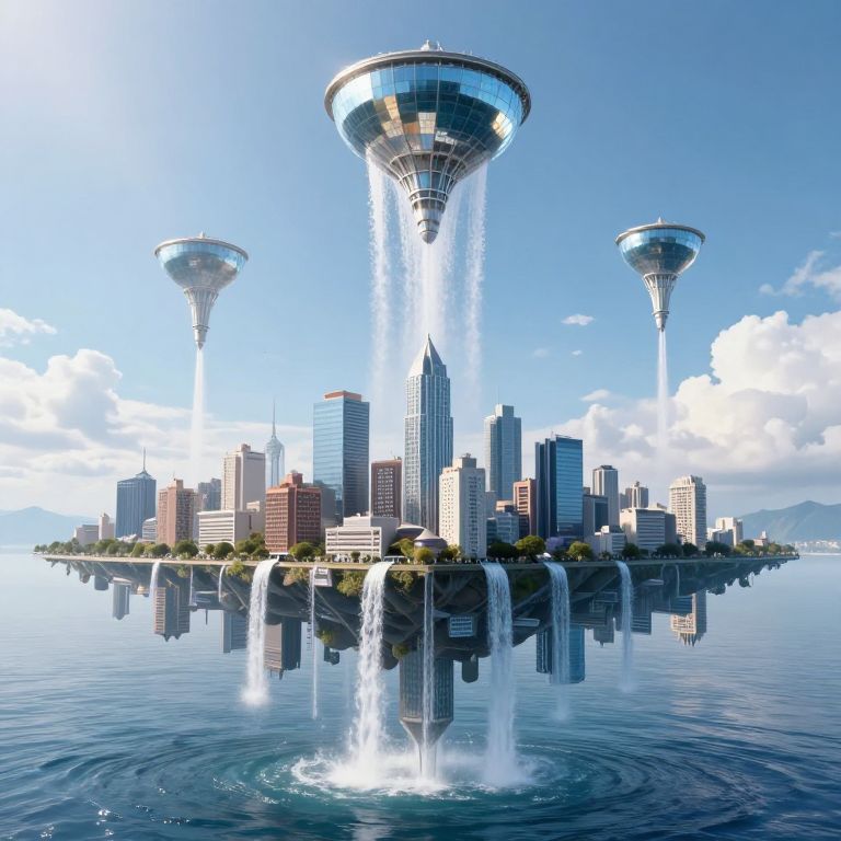 Upside-Down City with Floating Water Towers