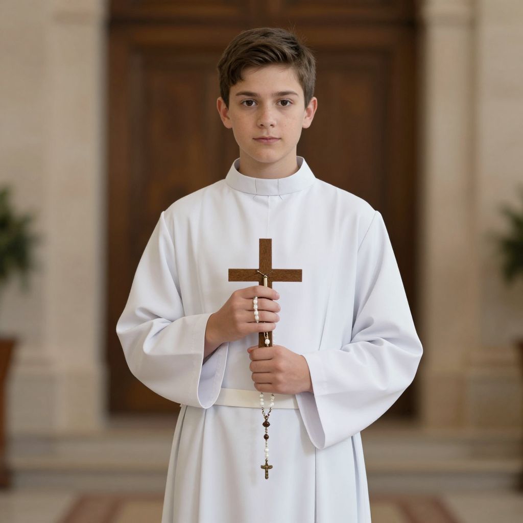 Boy in Priest Costume with Cross