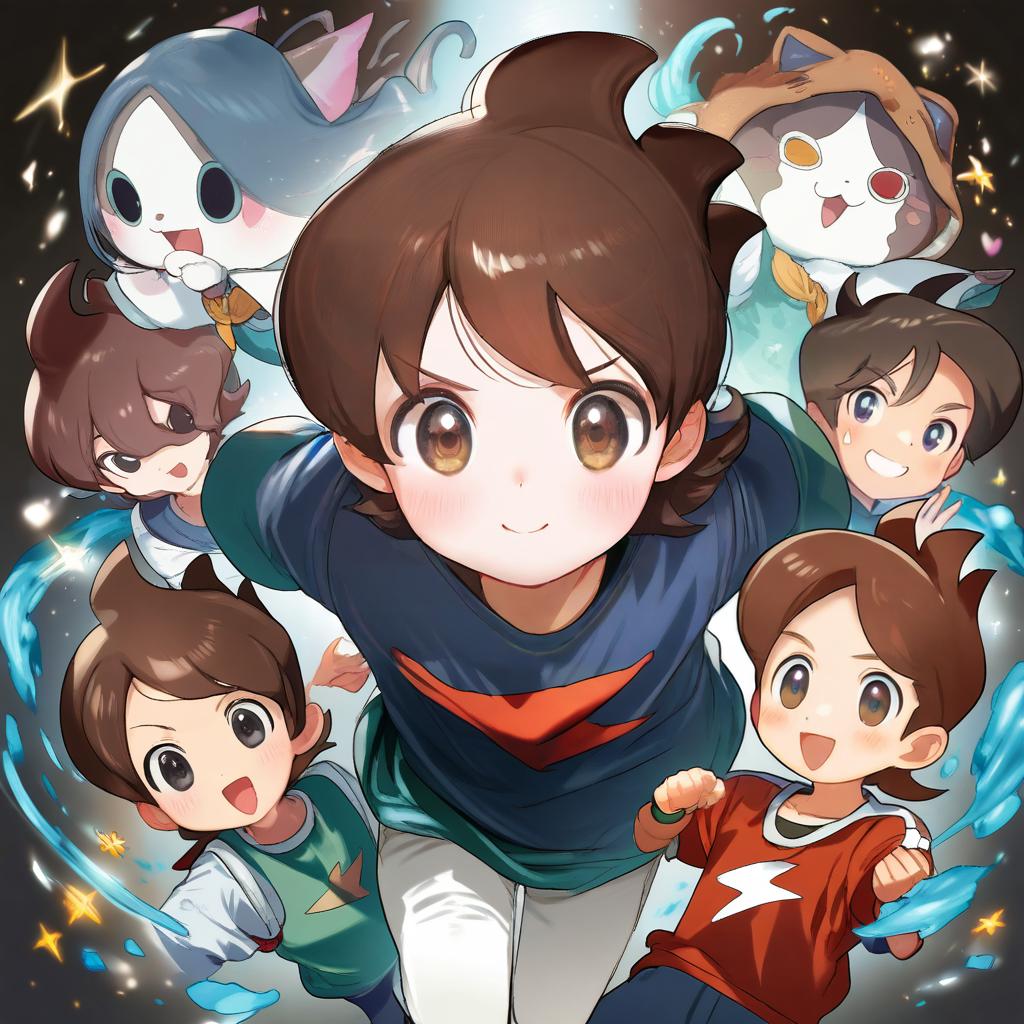 Amano keita, youkai watch, 1boy, black eyes, brown eyes, brown hair, by artist yanyo (ogino atsuki), animagine
