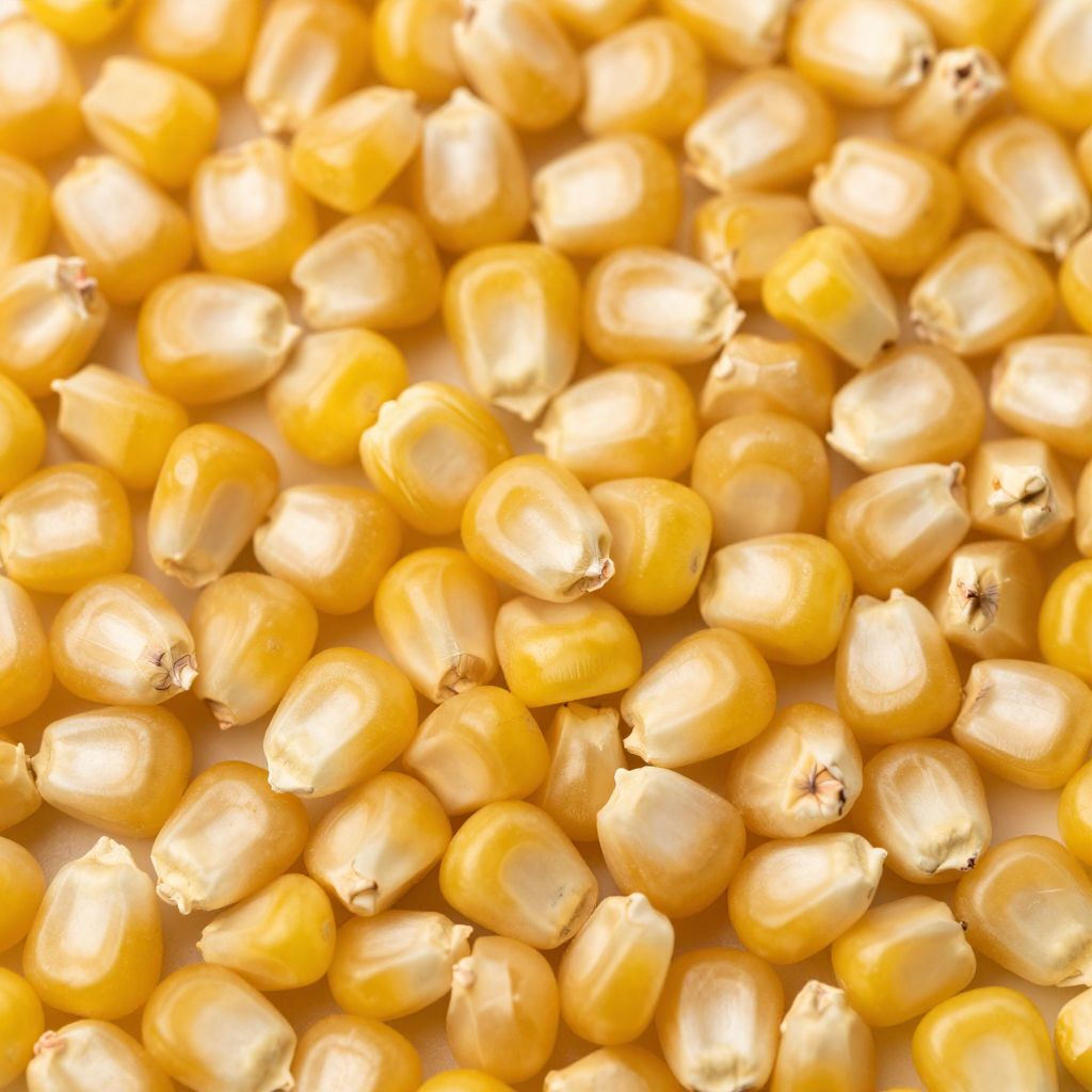 Detailed close-up macro photograph of densely packed corn kernels. The image captures the warm yellow texture and natural surface of the kernels in a full frame composition, suitable for backgrounds or patterns.