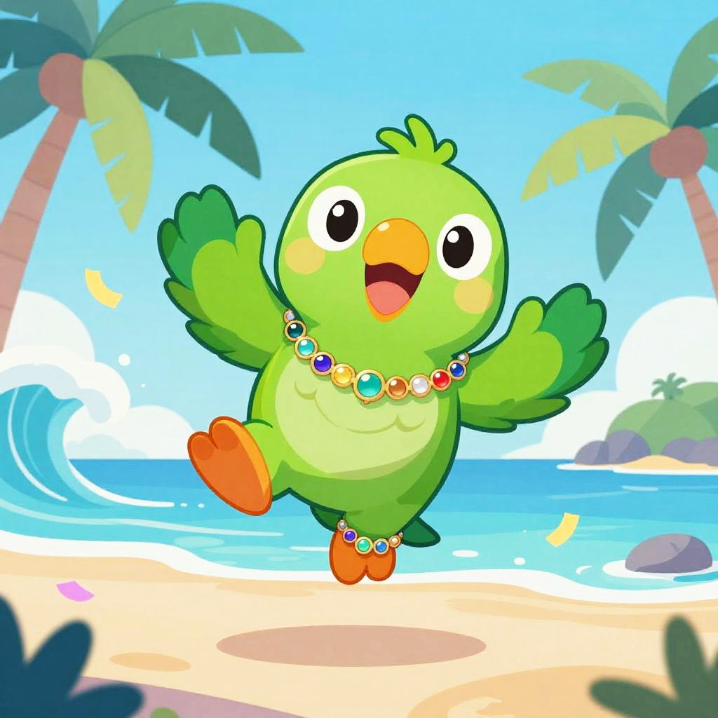 Jovial cartoon blue whale, featuring sparkling underwater treasure necklace, in deep sea trench surrounded by glowing plankton; serene expression, gentle gliding pose, clean vector curves and bold cel-shaded forms, vivid complementary palette, smooth lines and tight color blocking, soft drop shadows, subtle halftone or paper grain, stylized perspective, balanced composition, whimsical icons and confetti accents, high contrast rim lighting, friendly upbeat mood, crisp high clarity aesthetic