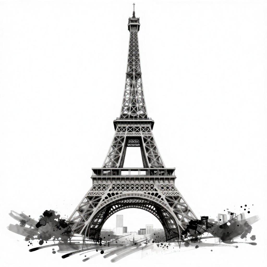 Bold Ink-Splattered Eiffel Tower Sketch