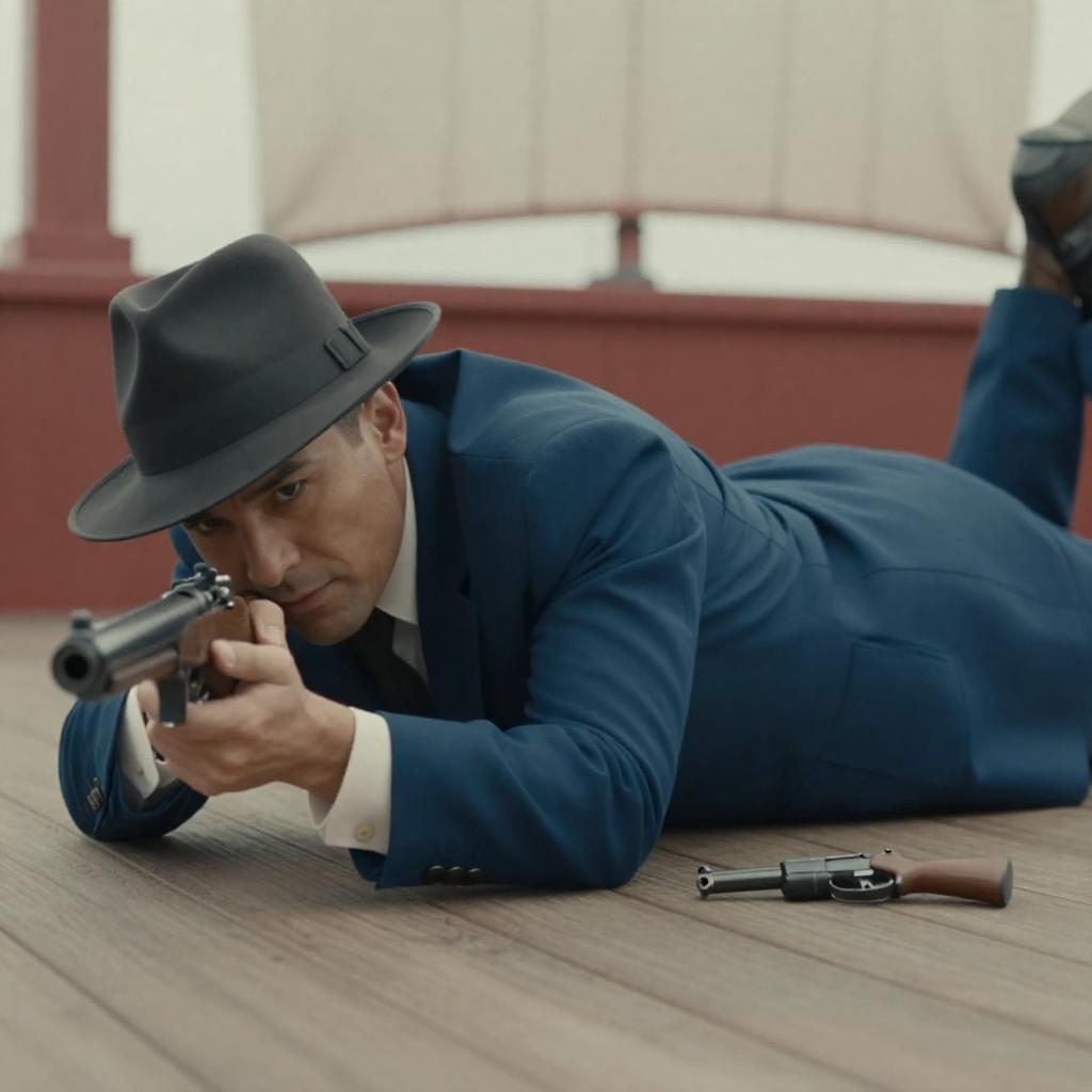 Determined Man with Fedora and Handgun