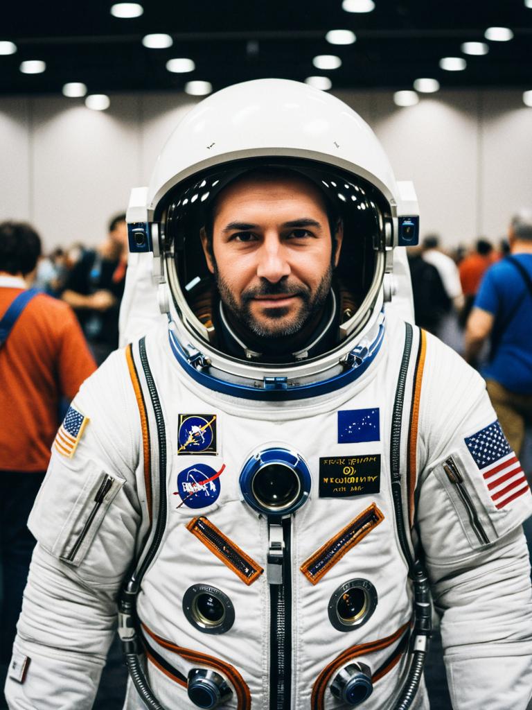Man in Astronaut Costume, candid cosplay portrait at sci-fi convention