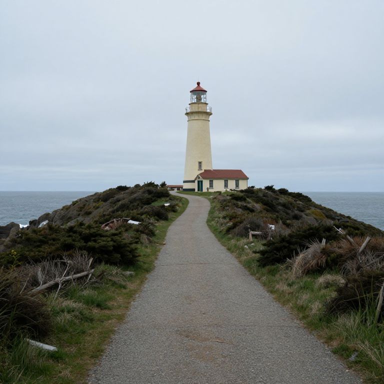 A serene coastal path winds toward the Heceta Lighthouse, where the whispers of the ocean meet the stillness of the land, inviting contemplation and a profound sense of connection to the timeless rhythm of nature.