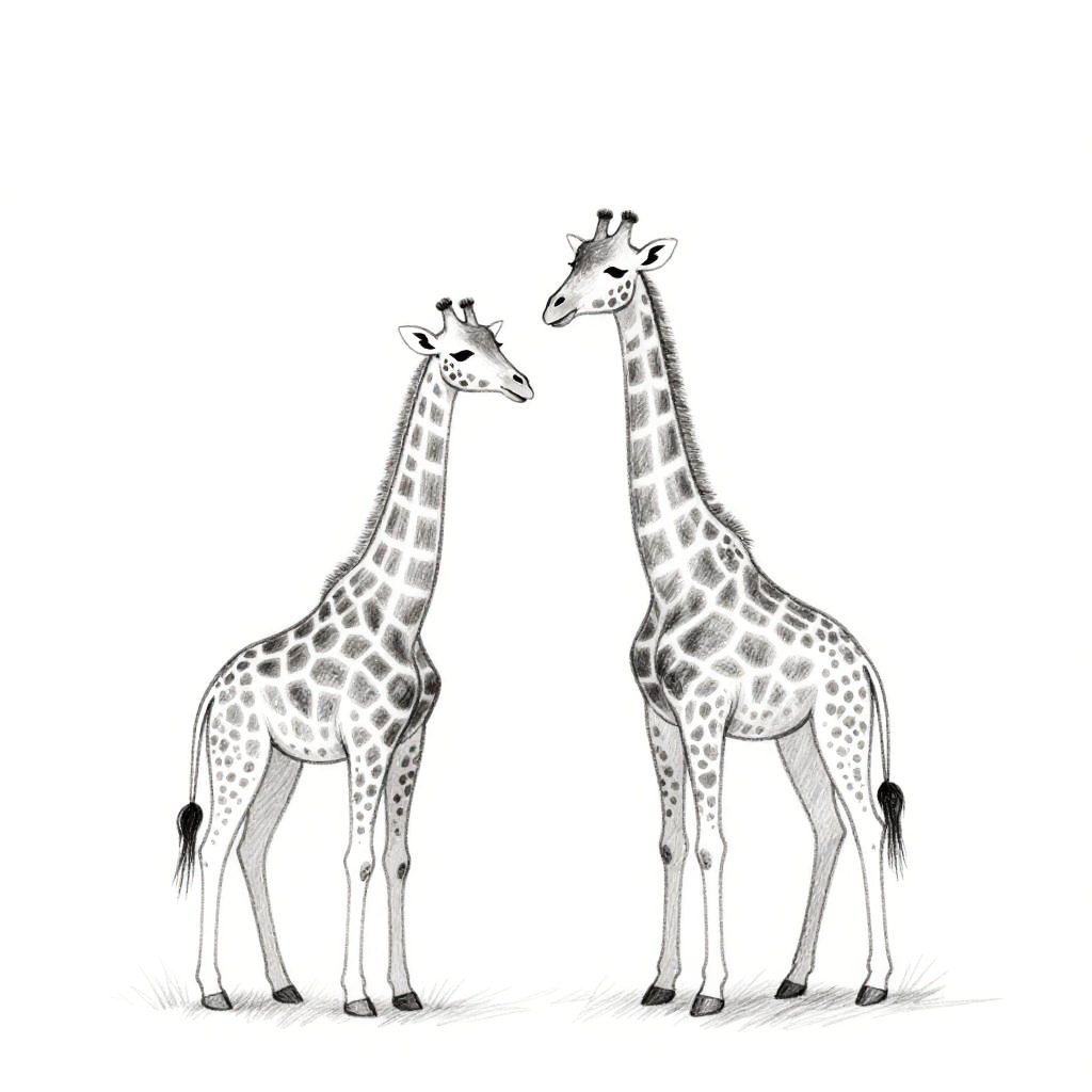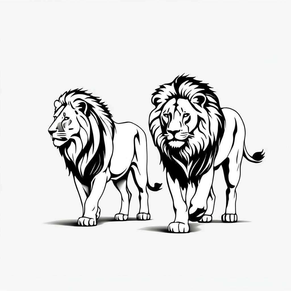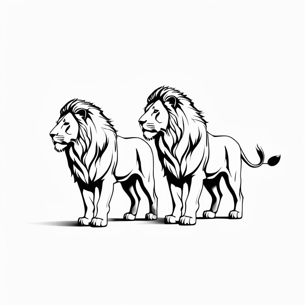 Male and female lions depicted as a minimalist pencil drawing, simple and elegant.