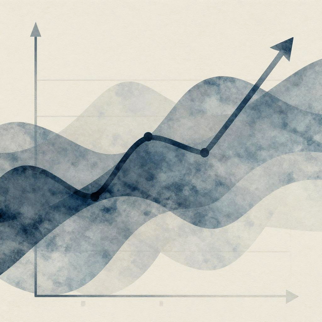 Stable stock graph showing steady, gradual upward trend lines in a modern financial dashboard interface, with clear gridlines and data points, soft blue and green tones, representing consistent market growth and stability, realistic style