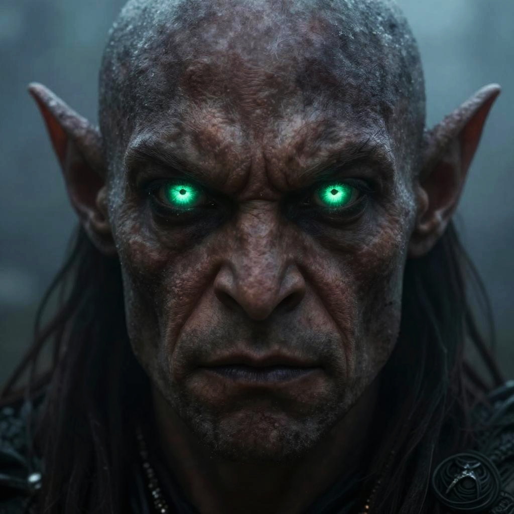 Fierce Half-Orc with Glowing Eyes