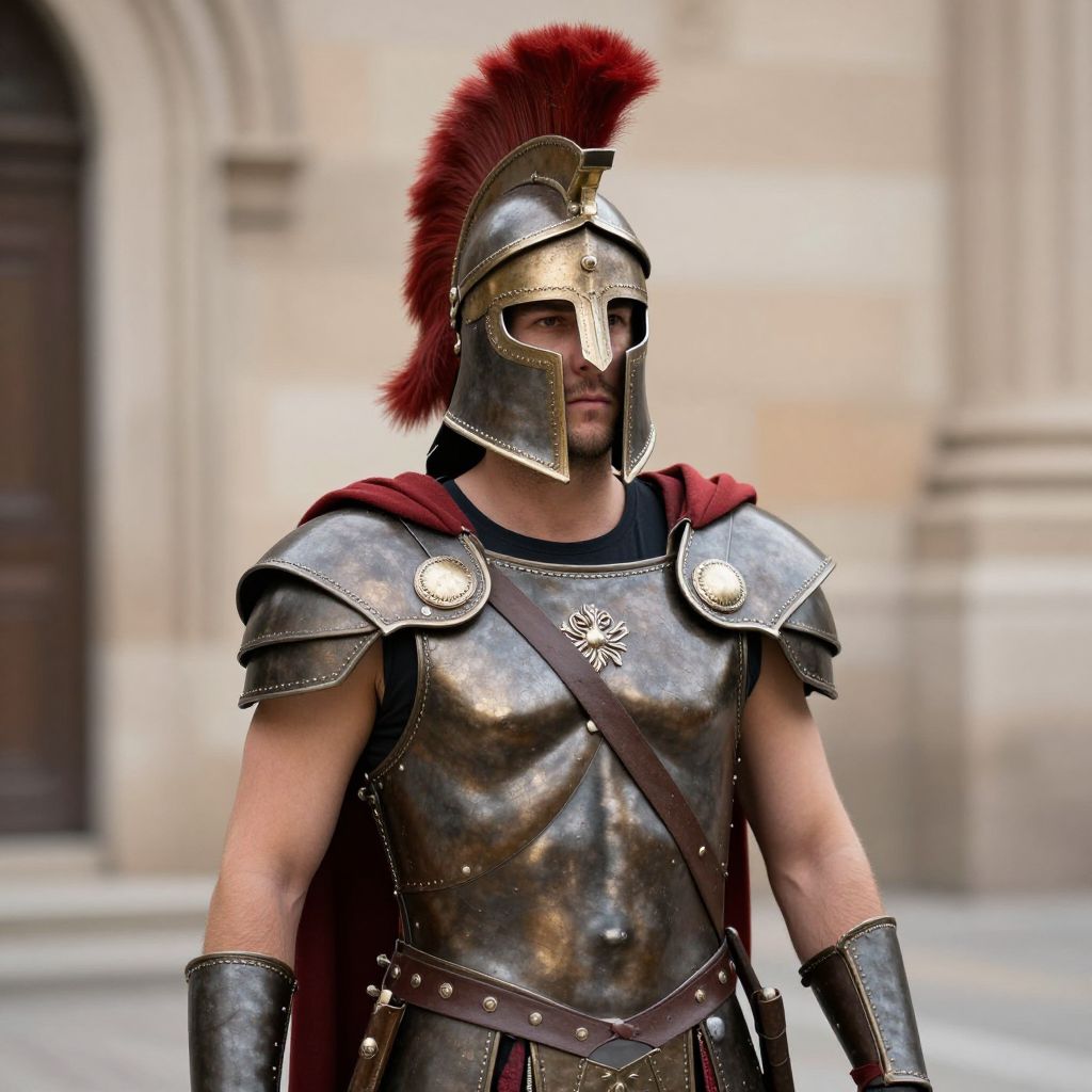 Man in Gladiator Helmet and Armor