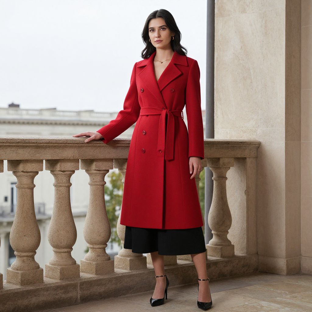 Woman in Red Coat on Balcony