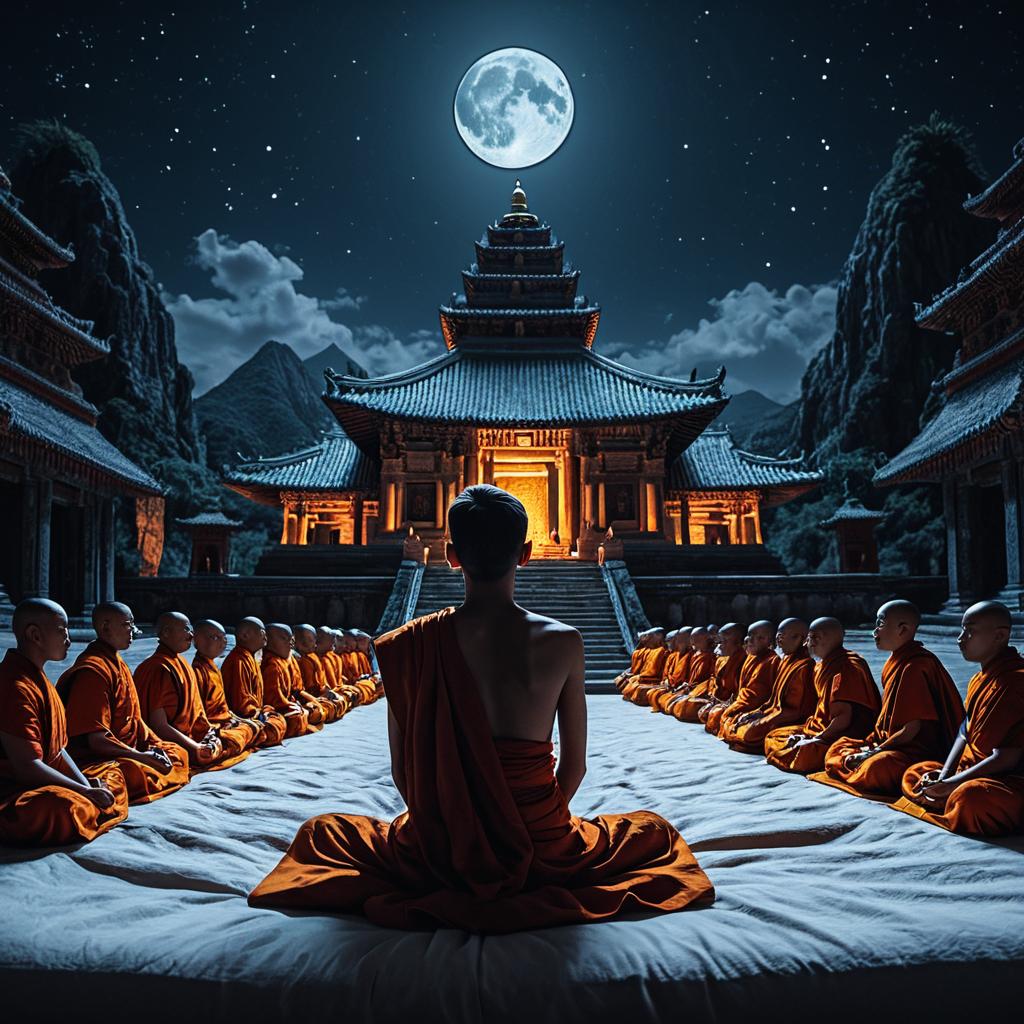 One young woman laying flat on a bed meditating and imagining a lush green valley with wildflowers and a gentle breeze, the scene looks spiritual, dreamy, and magical, with a cinematic ultra-realistic rendering in 8k, dramatic lighting, extreme detail.