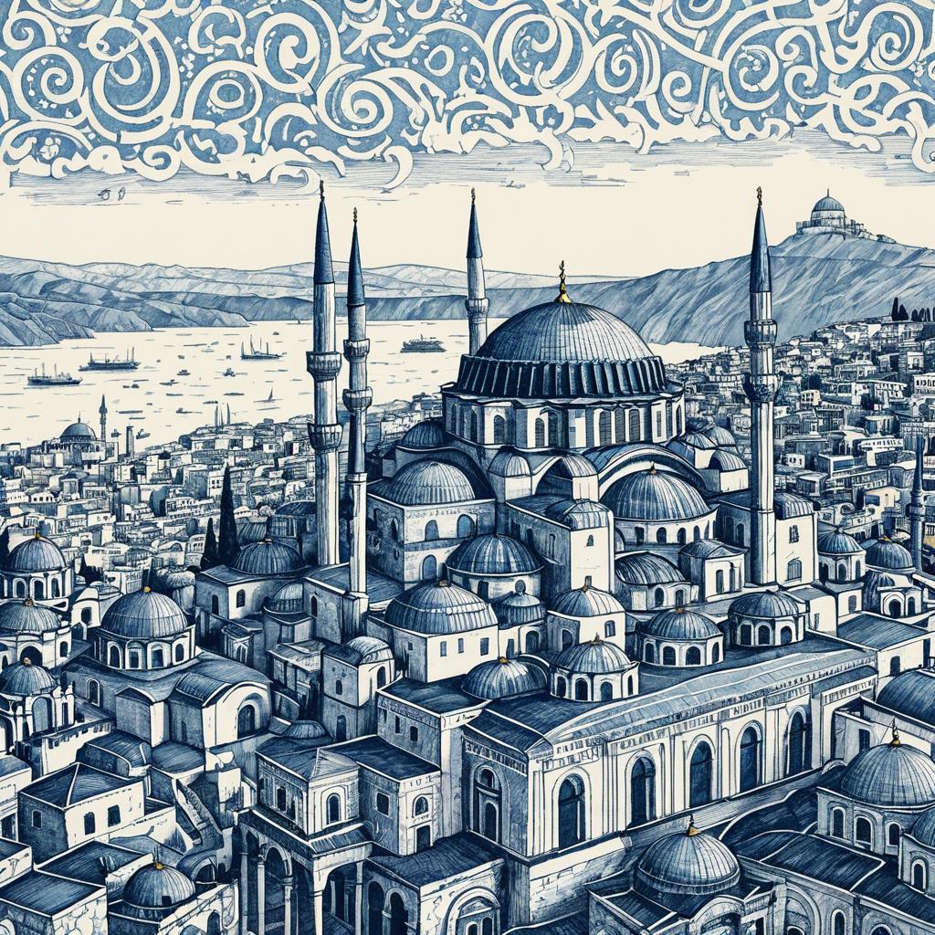 Detailed Ink Drawing of Mexican and Spanish Landmarks