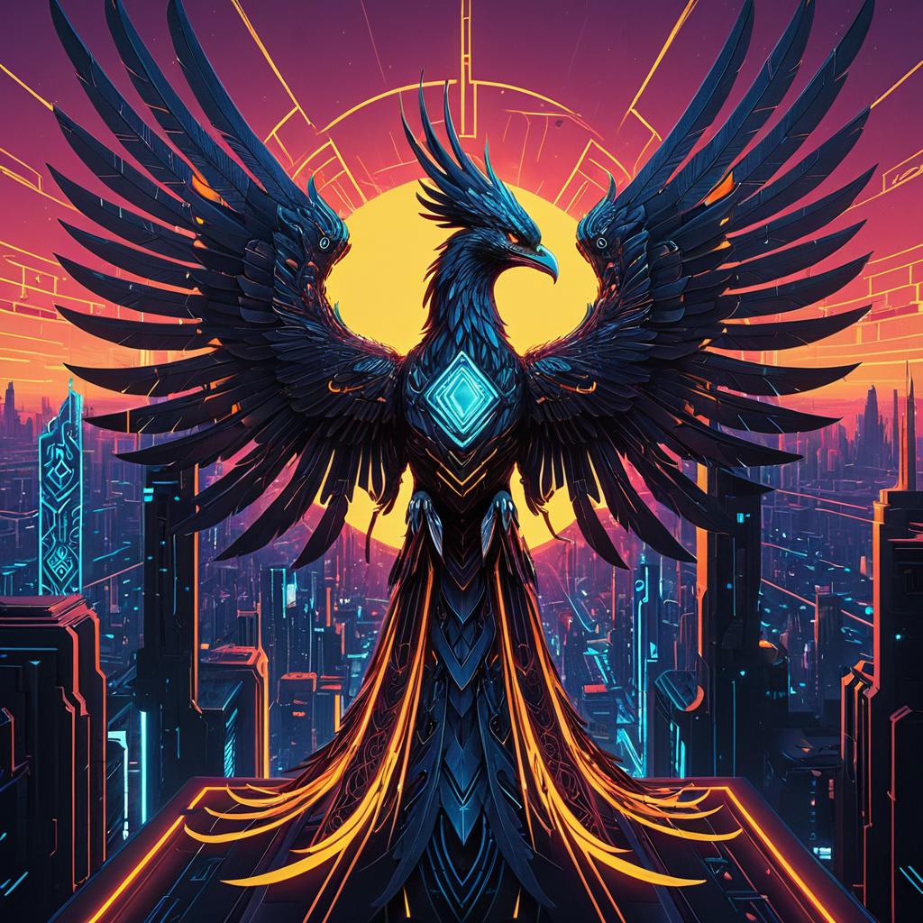 Cybernetic Phoenix in Neon Cityscape