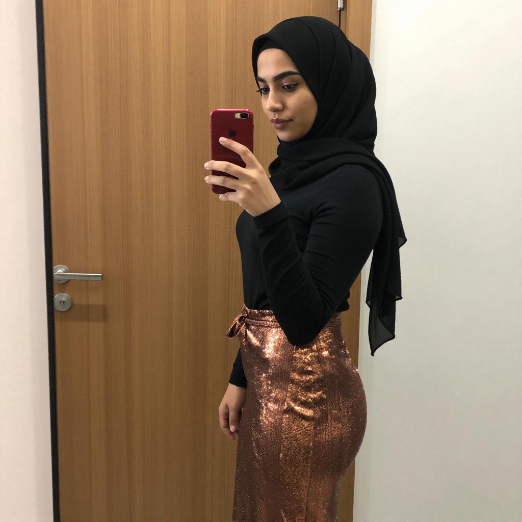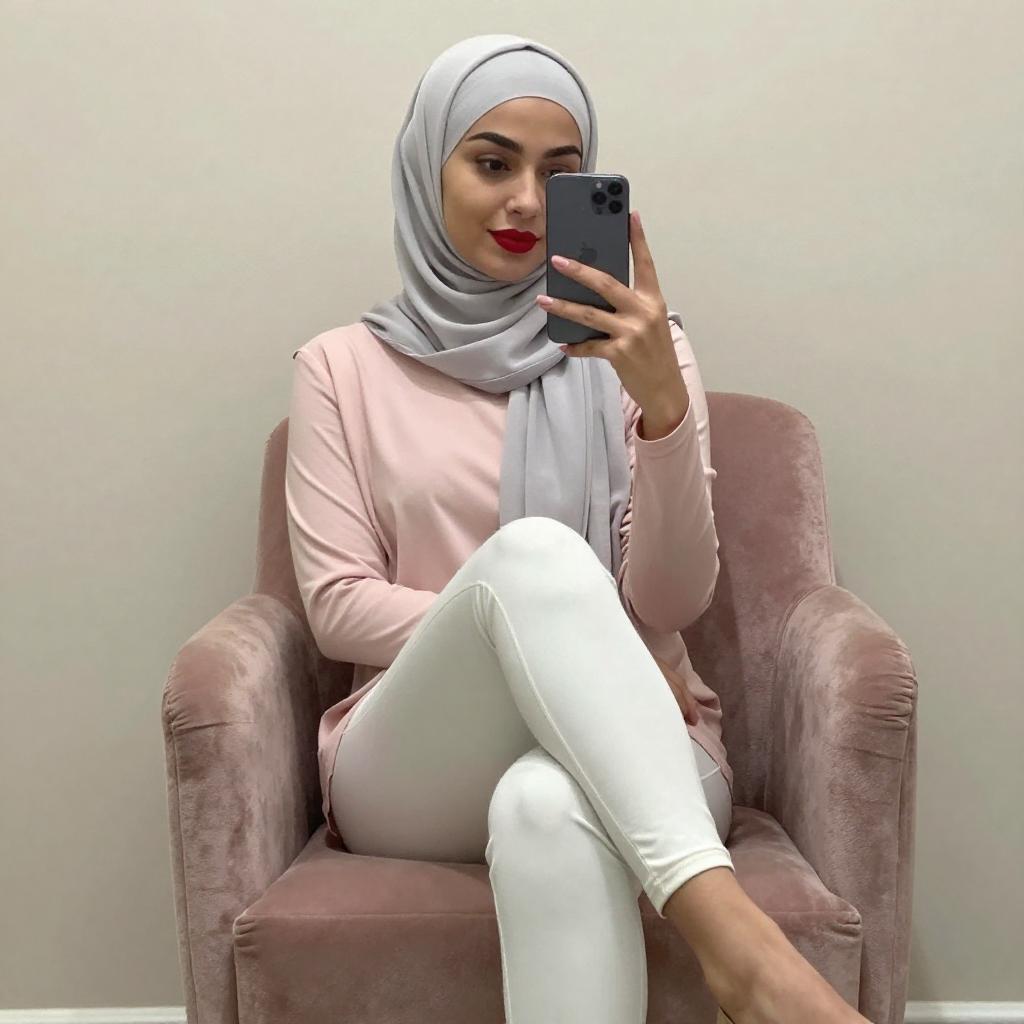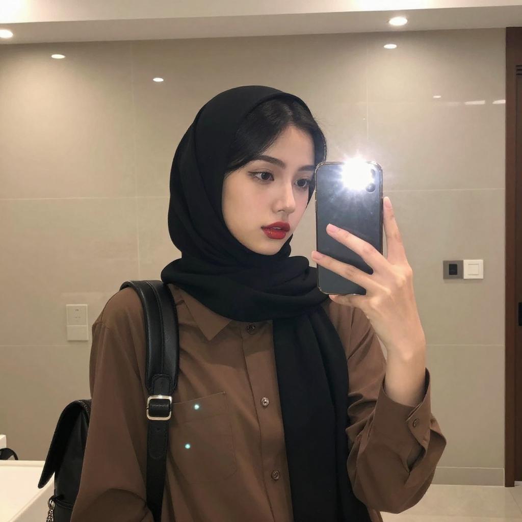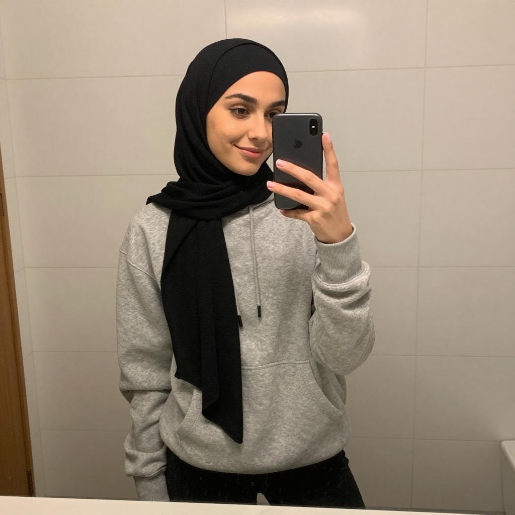 Young Woman Mirror Selfie in Hijab