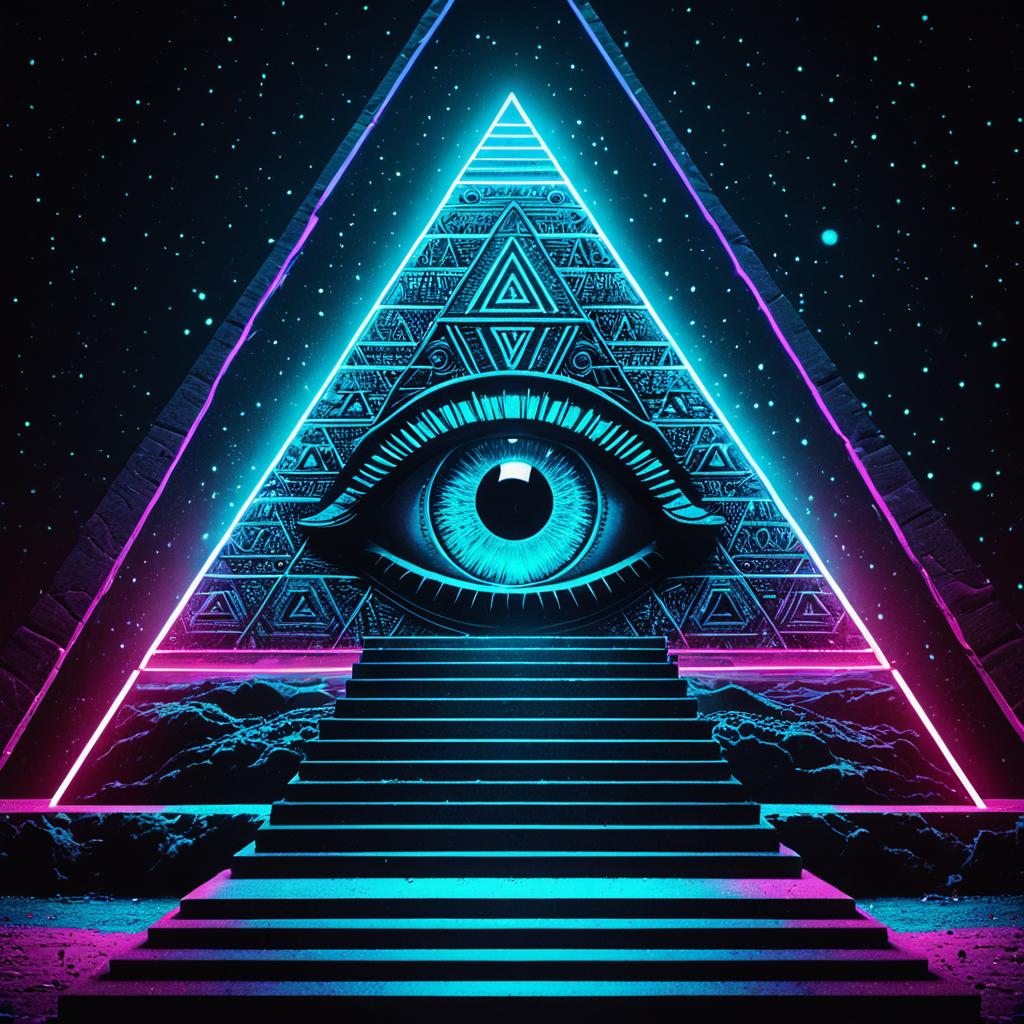 High resolution, 4k, detailed, high quality, professional, wide view of all-seeing eye and skull in neon, surreal glow, mystical aesthetic, sharp clarity