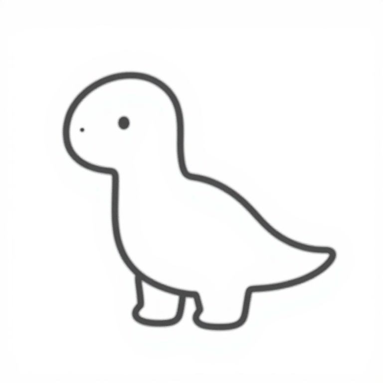 A minimalist, colorful drawing of a cute dinosaur with a rainbow-colored tail, standing on a white background.