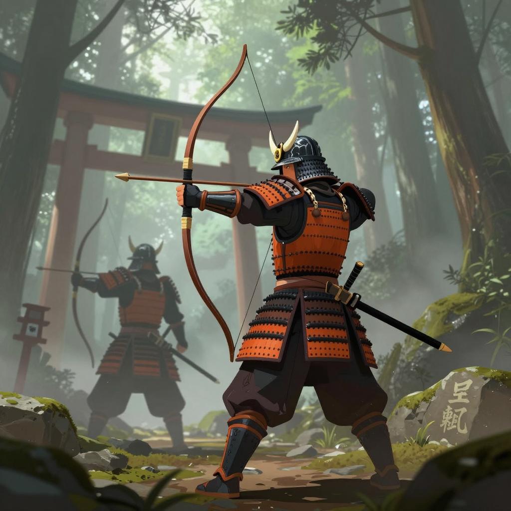 Misty Samurai In Full Armor Illustration