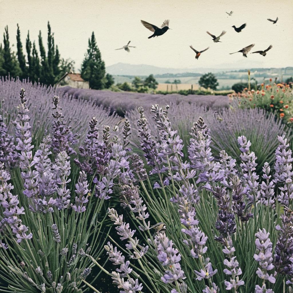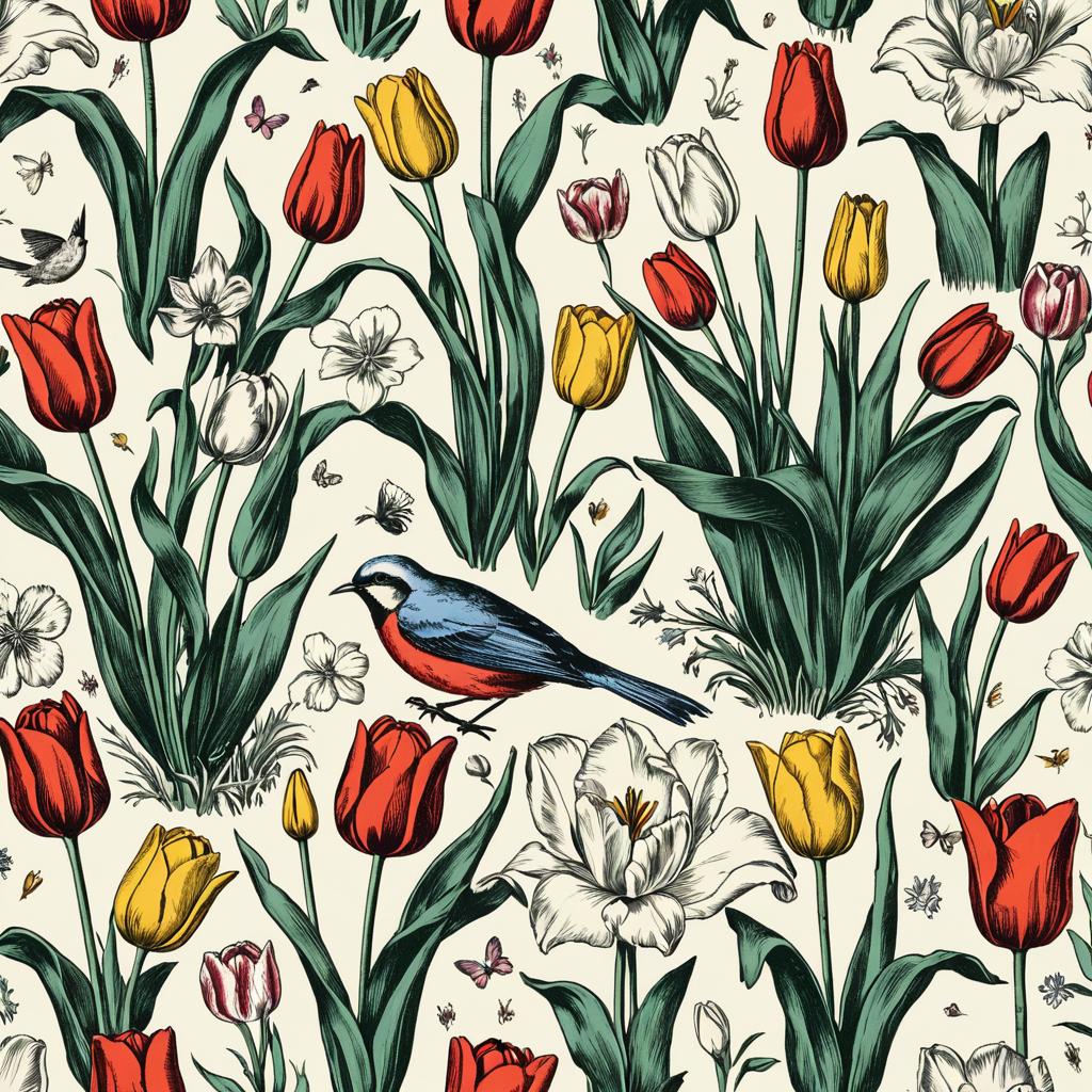 A garden of orchids with a hummingbird, vintage, muted pastels, various flowers, designed for wallpaper, repeatable, hand-drawn