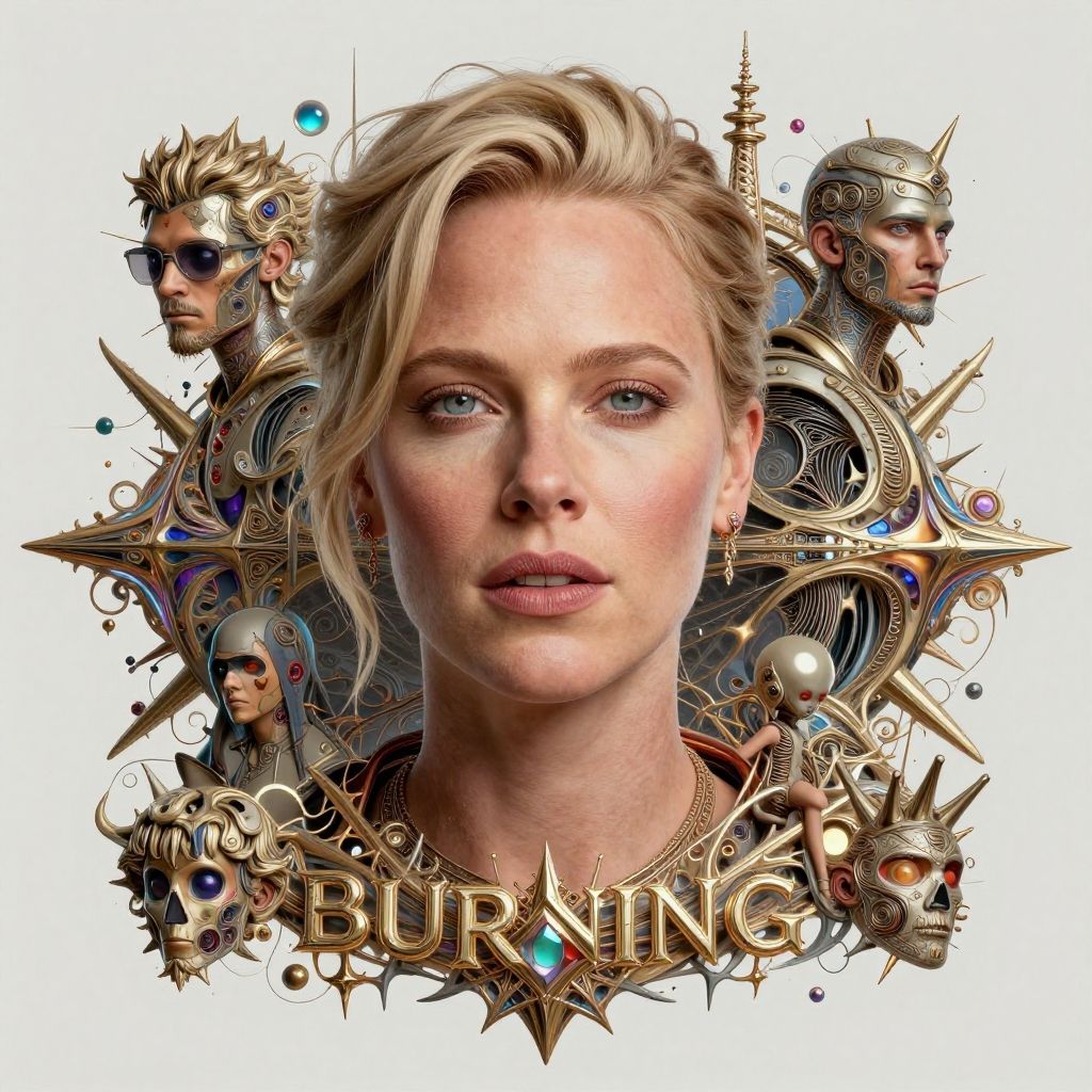 BURNING MAN. Charlize Theron. intricate artwork. by Tooth Wu, wlop, beeple, dan mumford. octane render, trending on artstation, greg rutkowski very coherent symmetrical artwork. cinematic, hyper realism, high detail, octane render, 8k, iridescent accents