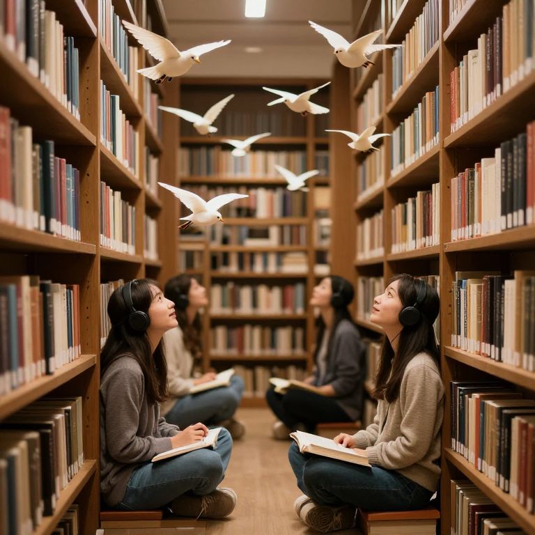 A library in which books do not sit on shelves but instead hover like birds, singing their stories aloud to listeners who wear ear-sized bindis.