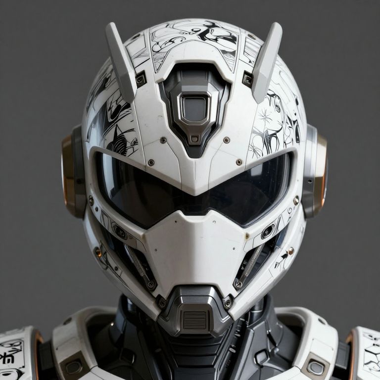 A hyper advanced futuristic helmet with intricate symmetrical details, cyber mech design, and anime style armor, featuring Manga Sci-fi motifs, created using Unreal Engine 5 in 4k, ultra-realistic.