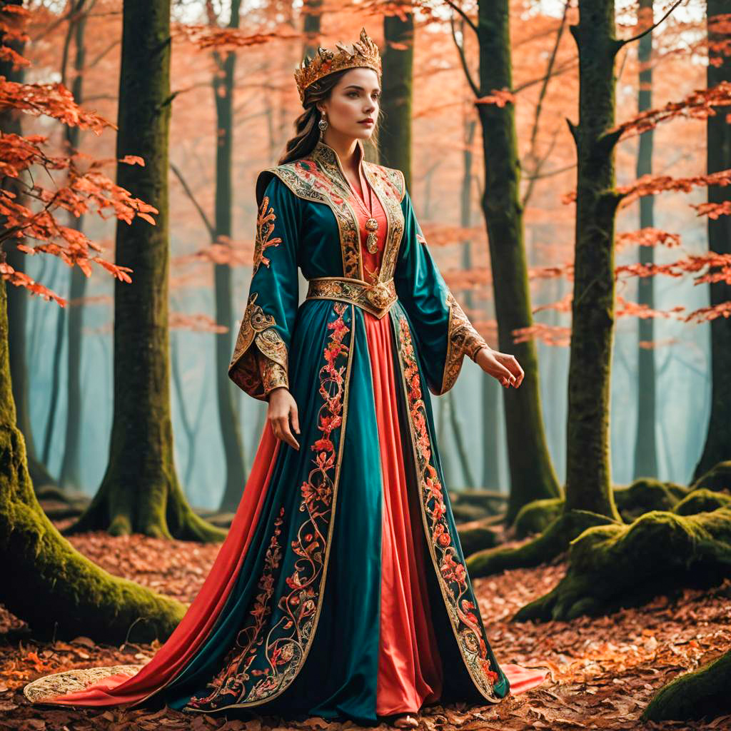 Medieval Fantasy Woman in Ornate Robe in Forest
