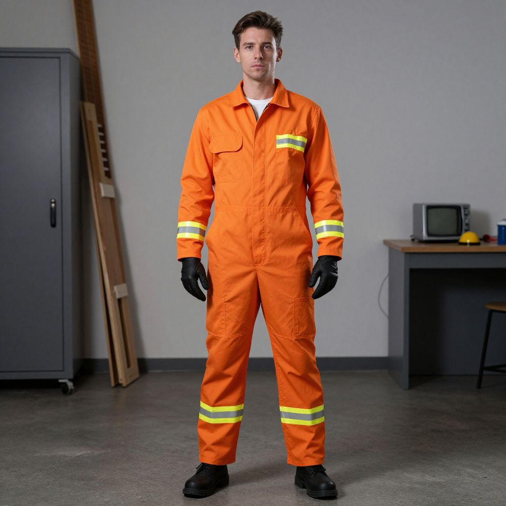 Orange Coverall Costume, man in orange coverall standing in a room