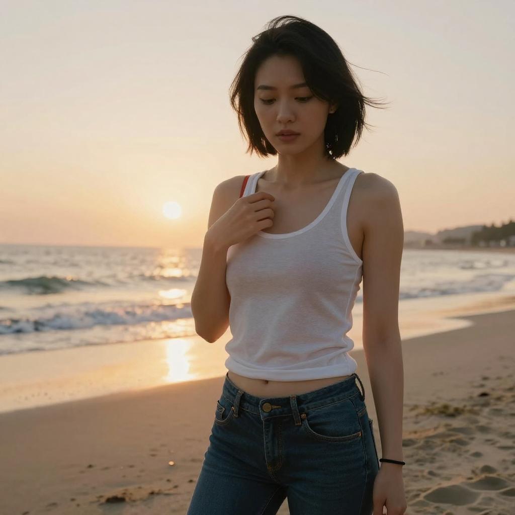 Serene Sunset Beach Walk for Young Woman