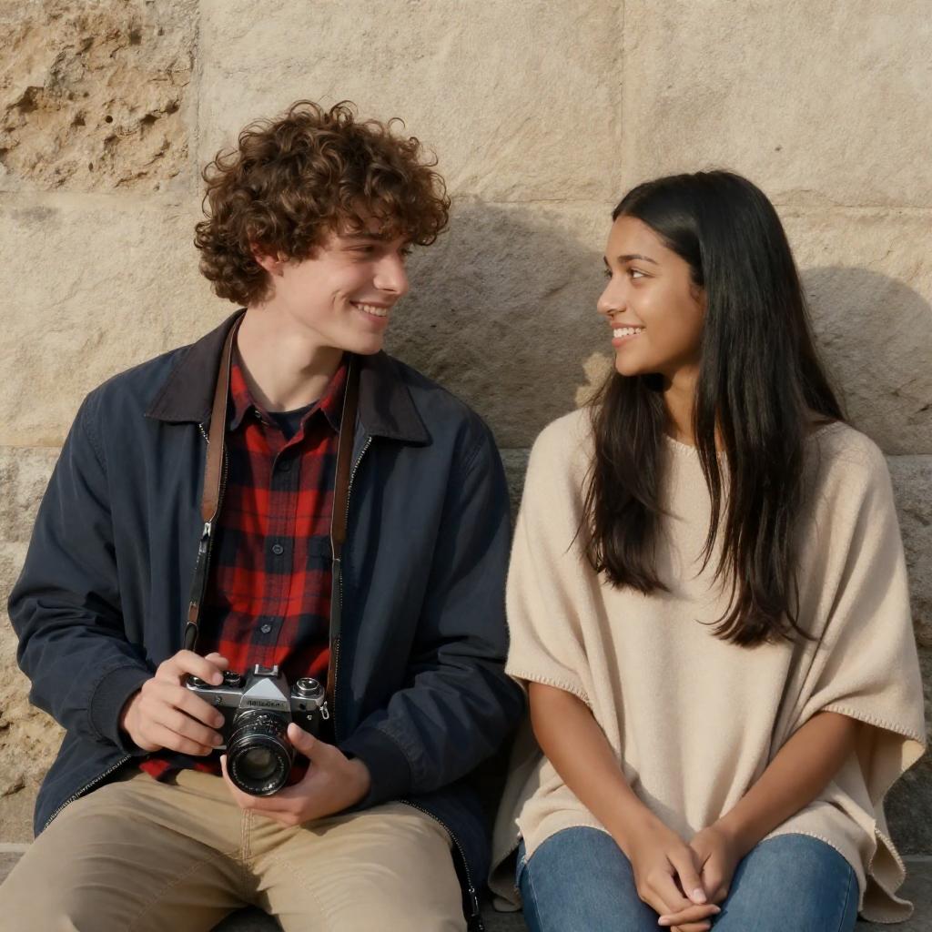 Two Men Sitting on Steps Chatting