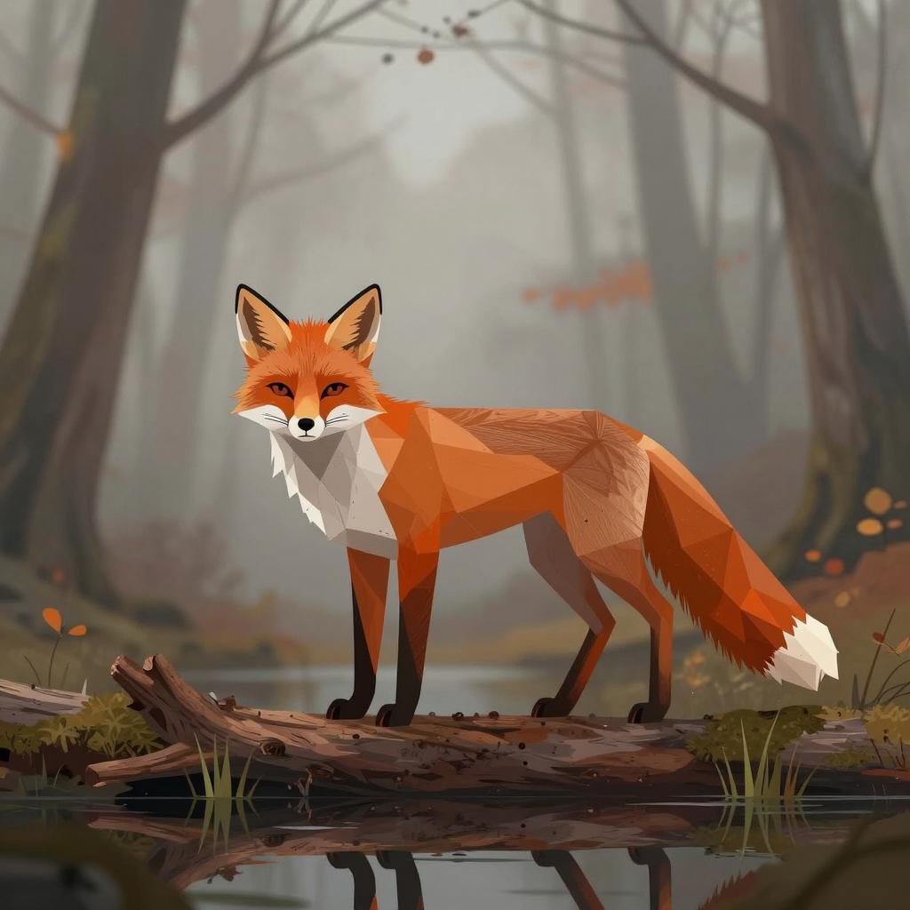 Illustration of a mysterious fox standing in a dark, ancient forest under soft moonlight. The scene is framed by twisted vines and dense foliage, with shadowy trees and hidden creatures blending into the background. Rendered in a dark and moody gothic style, emphasizing eerie atmosphere and intricate details.