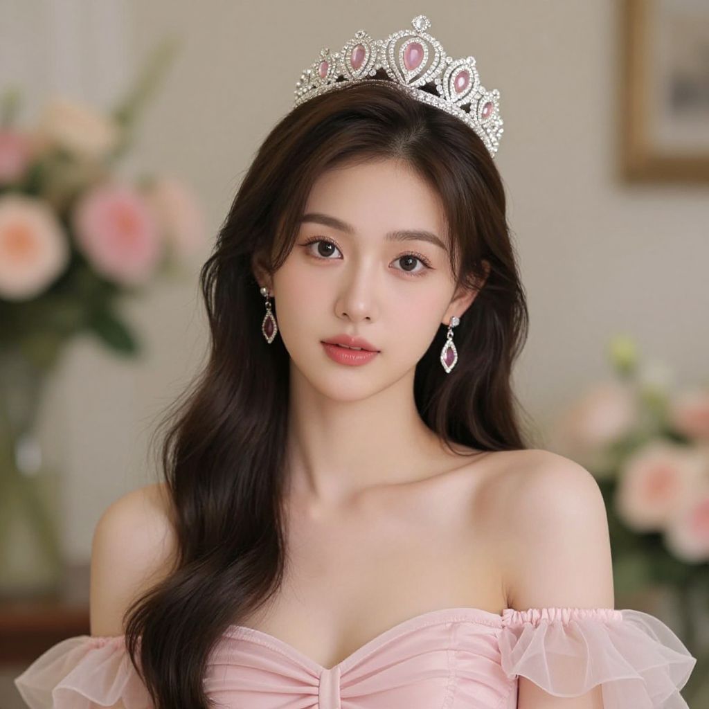 "queen hearts costume, 1girl, solo, crown, black hair, dress, red lips, jewelry, earrings, heart, looking at viewer, choker, chandelier, indoors, blurry, blurry background Realistic photo of casual sexy person with pretty face"