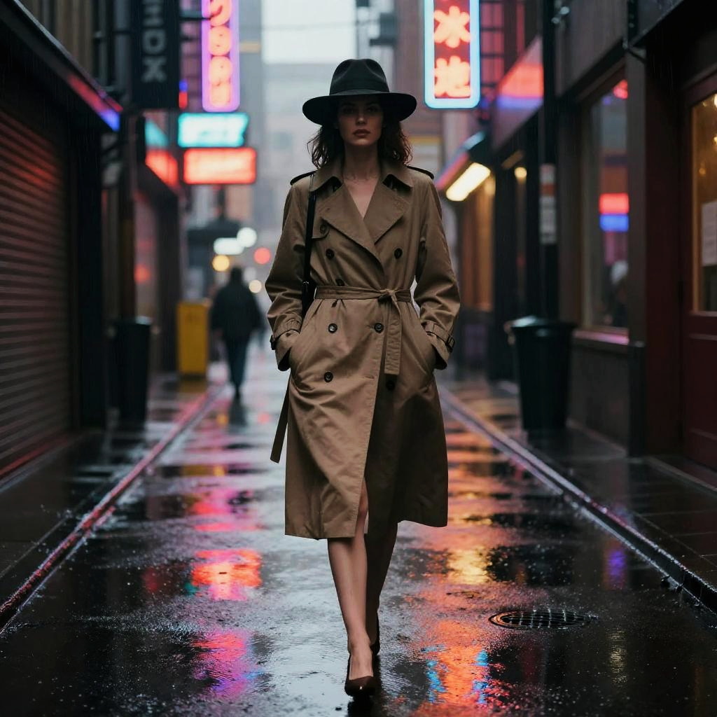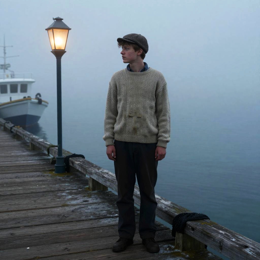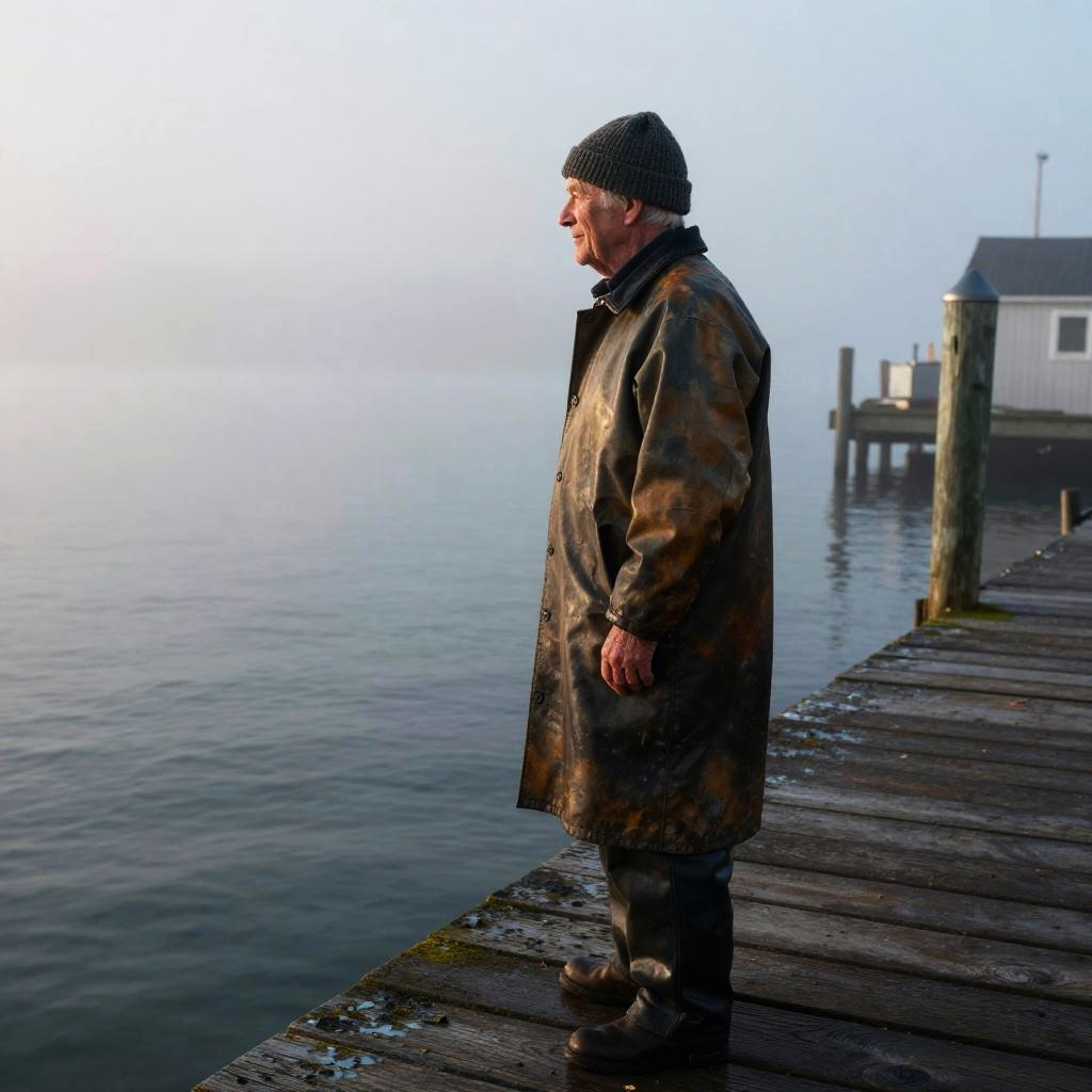 An elderly woman with a walking cane standing in a tranquil garden, illuminated by gentle twilight illumination. The scene evokes a reflective and serene mood, reminiscent of classic film styles, featuring rich colors and deep storytelling elements.