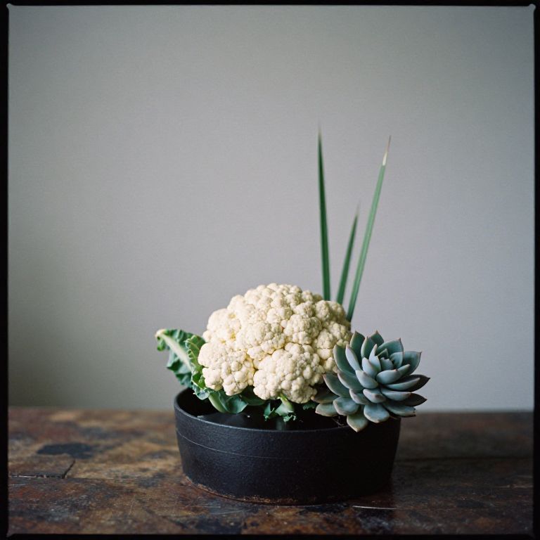 Cauliflower Effect Ikebana with desert succulents, photographed on medium format kodak portra 800 film smc takumar 105mm f/ 2. 8 c 50,