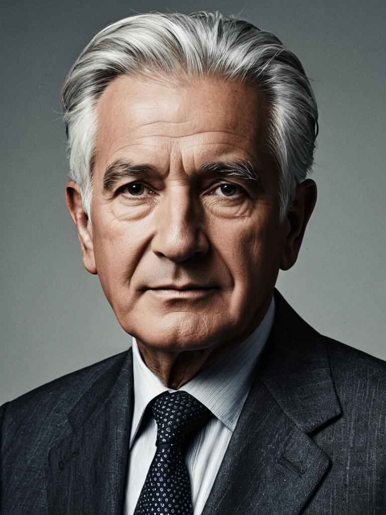 Old man grey hairstyle, 1boy, male focus, solo, old, realistic, old man, white hair, portrait, manly, grey background, formal, suit, closed mouth, wrinkled skin, looking at viewer