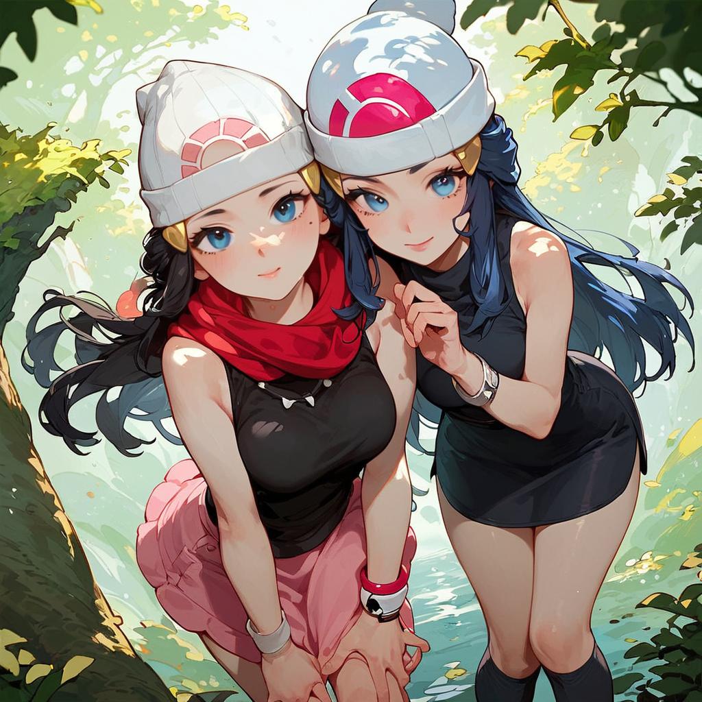 Score_9, score_8_up, score_7_up, source_anime, pokemonselene, black hair, blue eyes, short hair, bangs, blunt bangs, beanie, collarbone, green shorts, hat, red headwear, shirt, short sleeves, shorts, tied shirt, yellow shirt, outdoors, cityscape, looking at viewer, cowboy shot, dutch angle