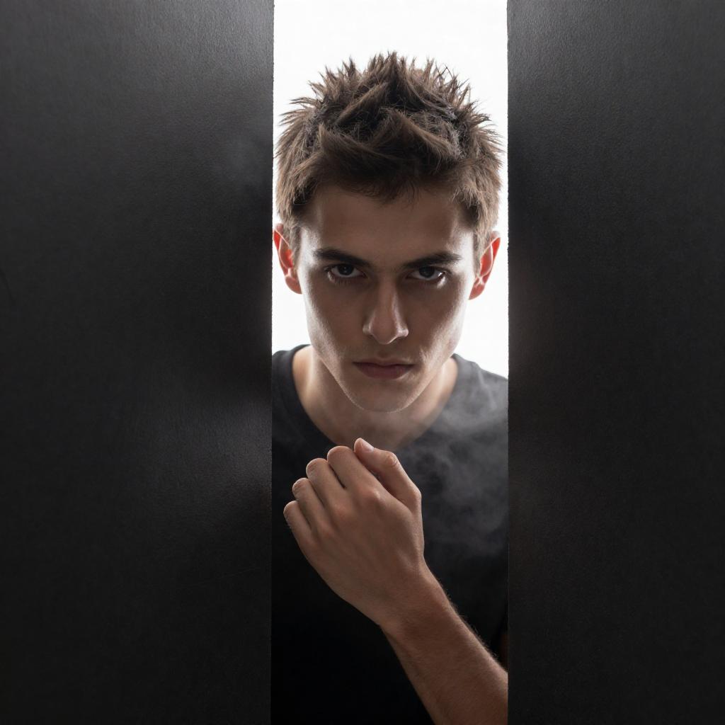 Young Man in Broken Brick Window