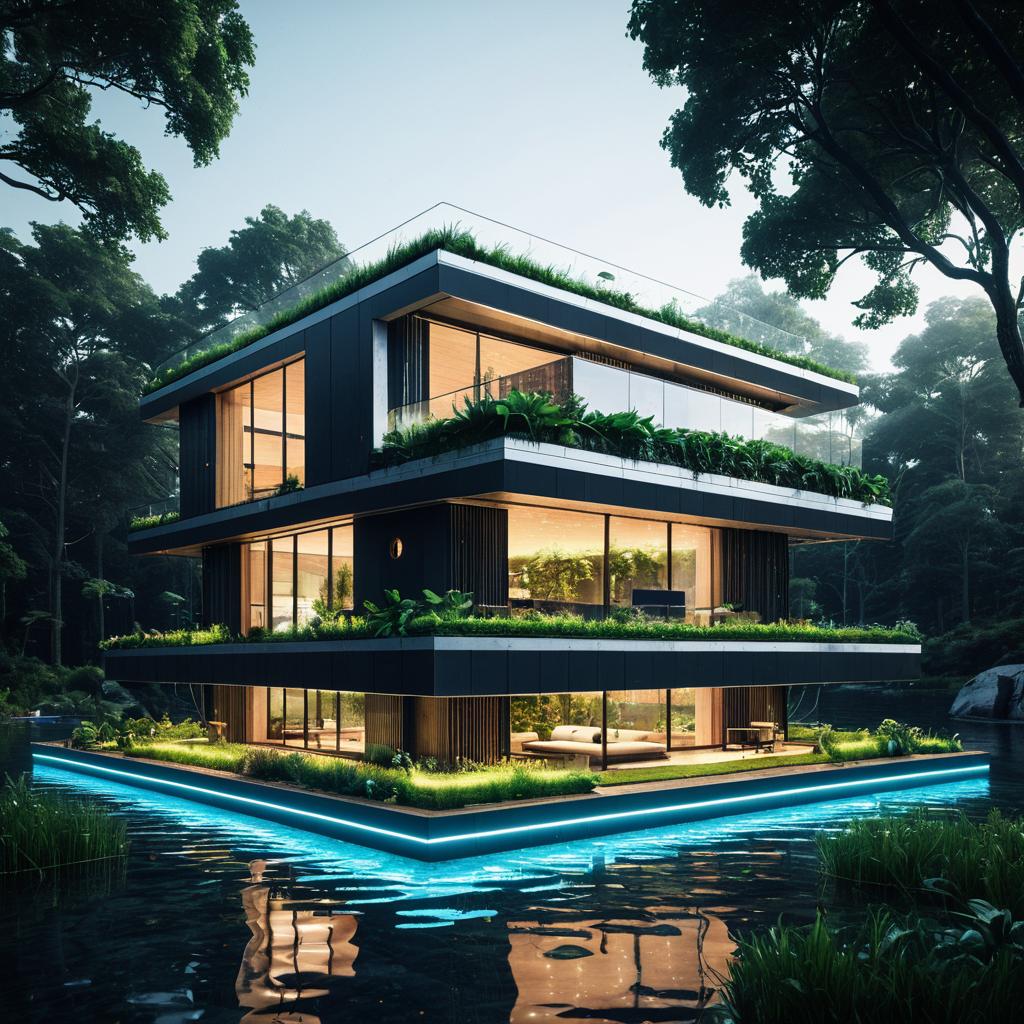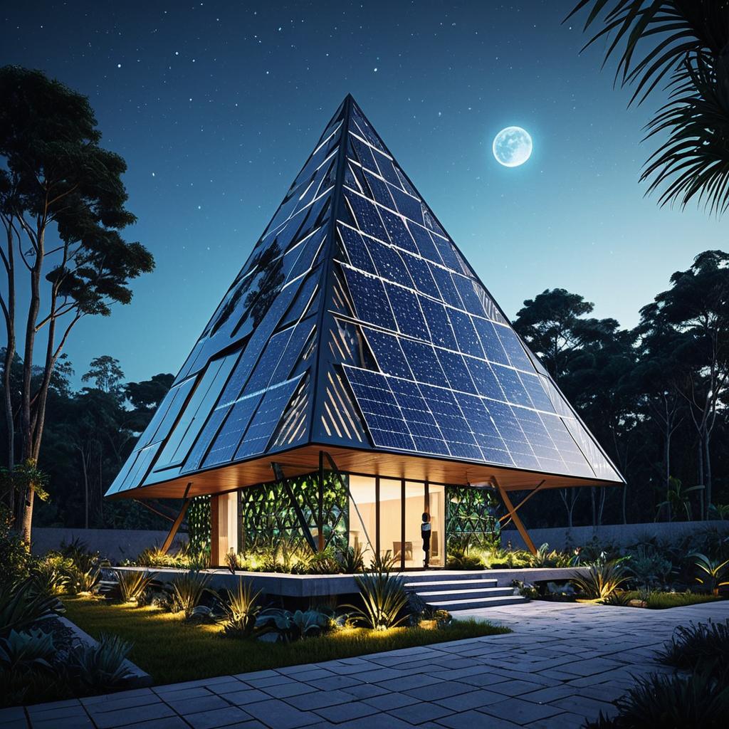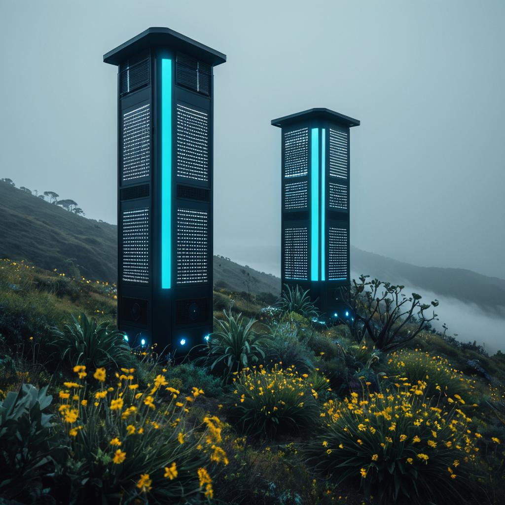 Futuristic Solar-Powered Air Purification Towers on Hillside